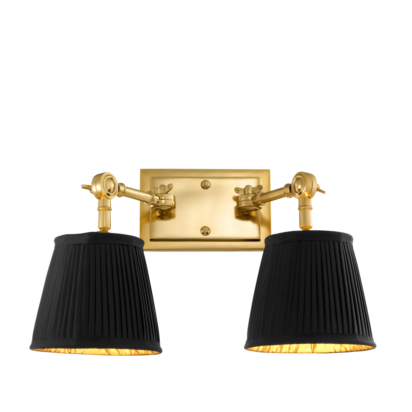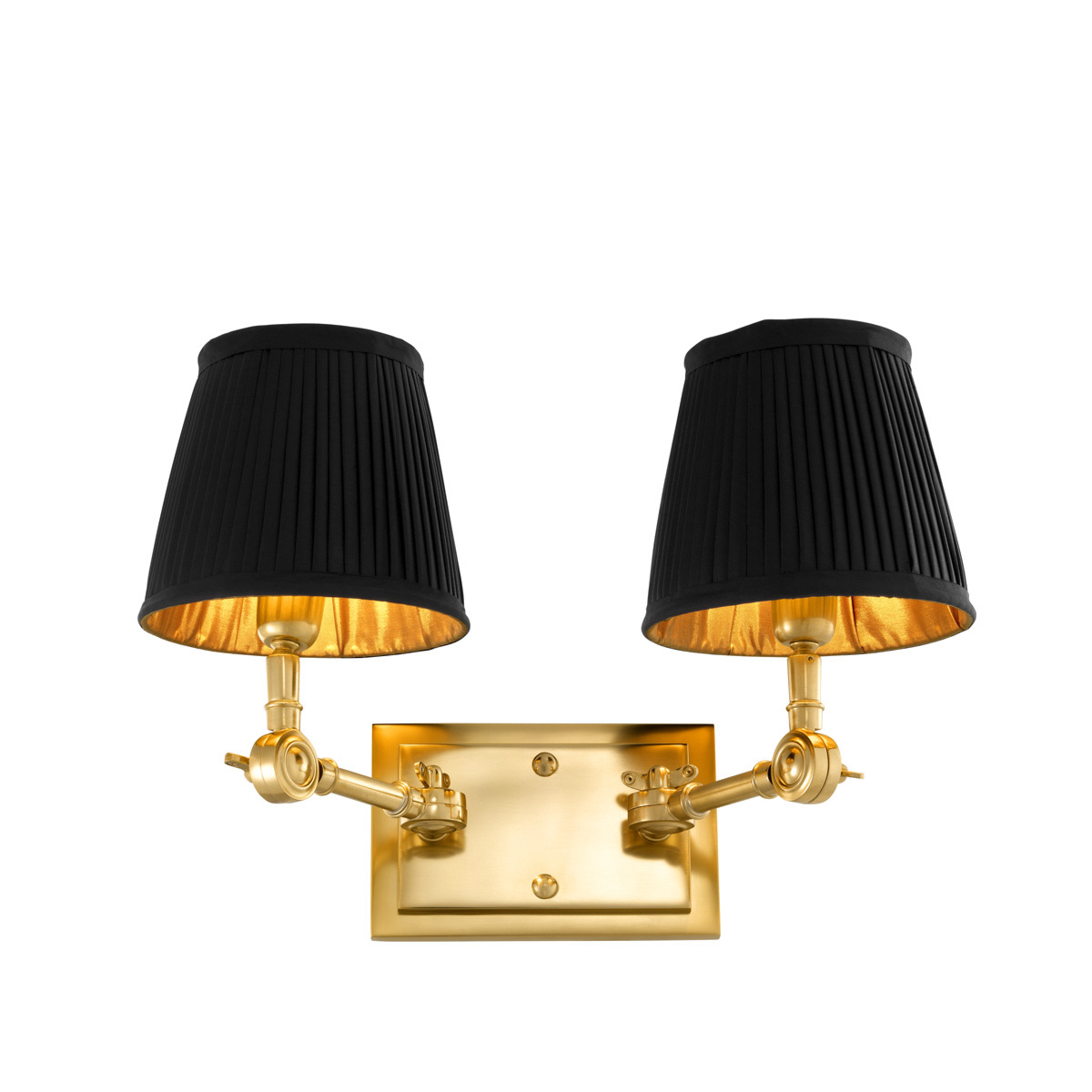 Aplică de perete, Wentworth Double finisaj auriu, abajur negru inclus, Dims: W. 33 | D. 25 | H. 25 (CM)