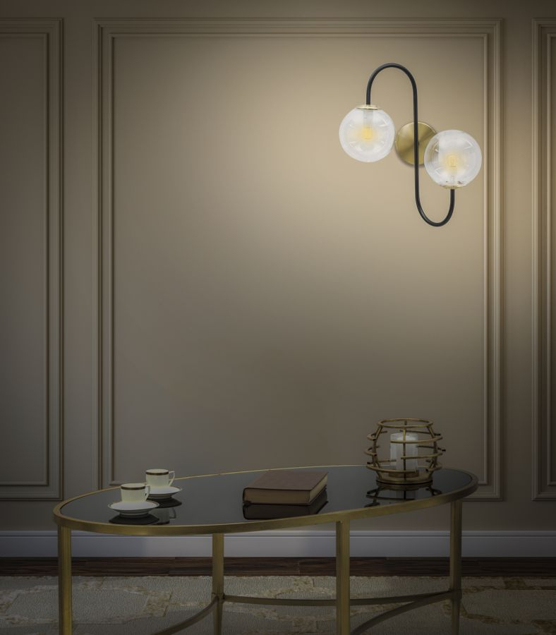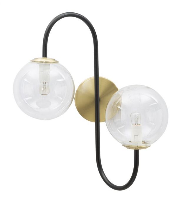 Aplica, fier/sticla, auriu/negru, 36x24x45 cm