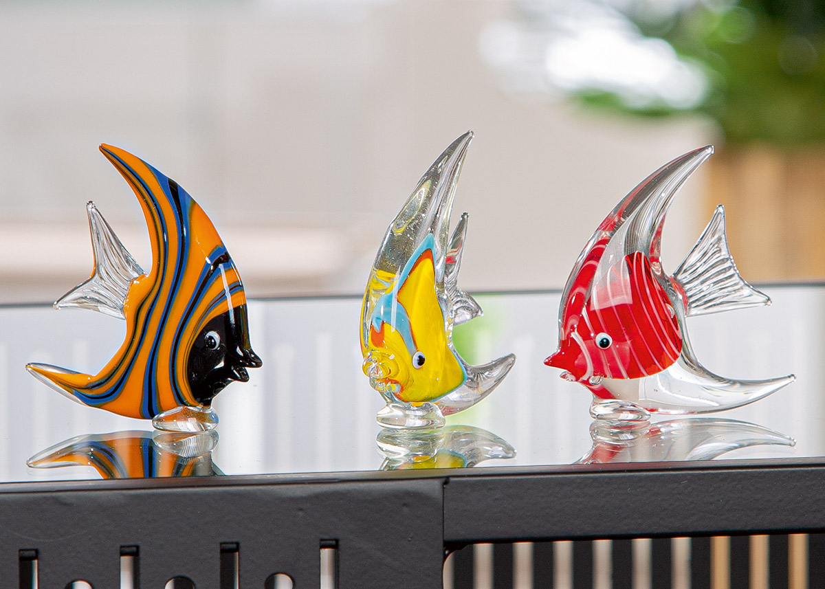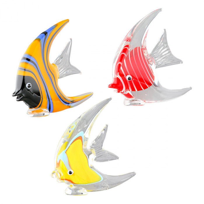 Figurină, Pește, Scalar, Sticlă, bej, albastru, portocaliu, roșu, galben, PU 6, 3 buc. asortate, L. 1,5 cm, L. 7,5 cm, H. 7,5 cm