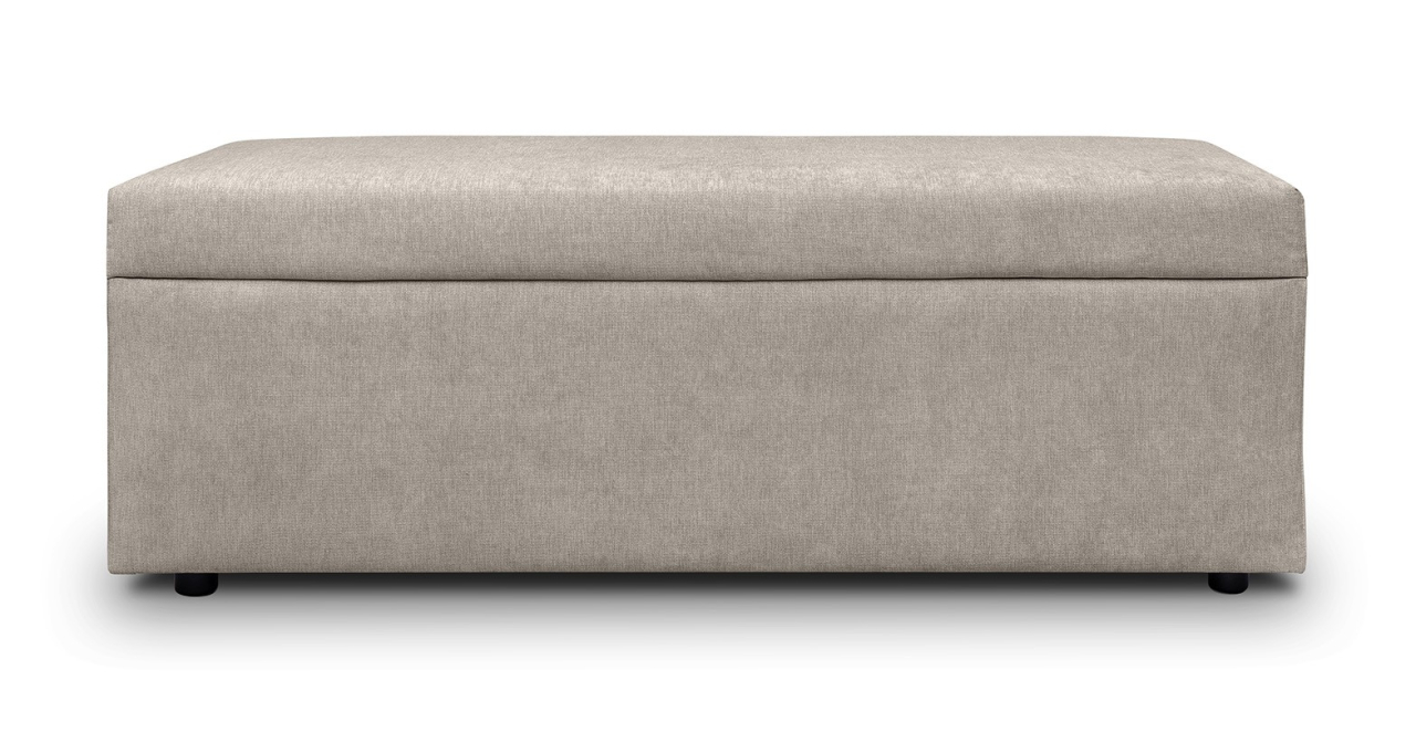Bancheta tapitata, în stil modern, cu spatiu de depozitare si sezut confortabil.