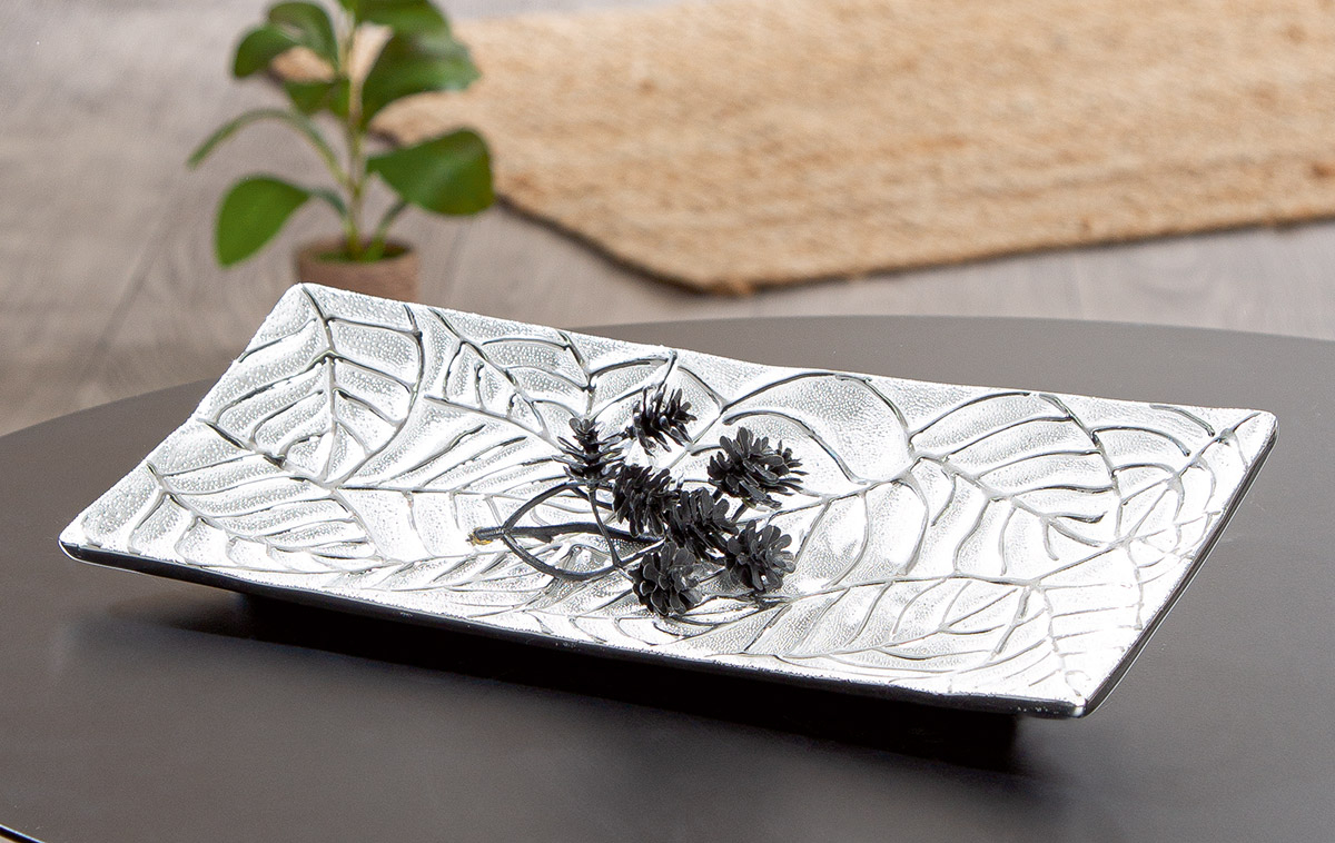Bol, dreptunghiular, "Faggio", motiv cu frunze, ceramica, culoare argintie, PU 2, L. 13,5 cm, latime 31 cm, inaltime 2,5 cm