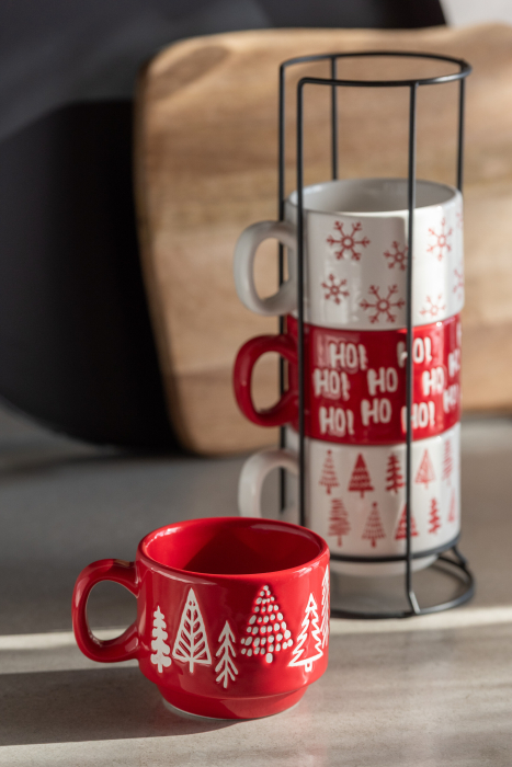Cutie cu 4 cesti de cafea Craciun, Dolomite alb/ rosu | L 16X l 15X H 29.5 cm