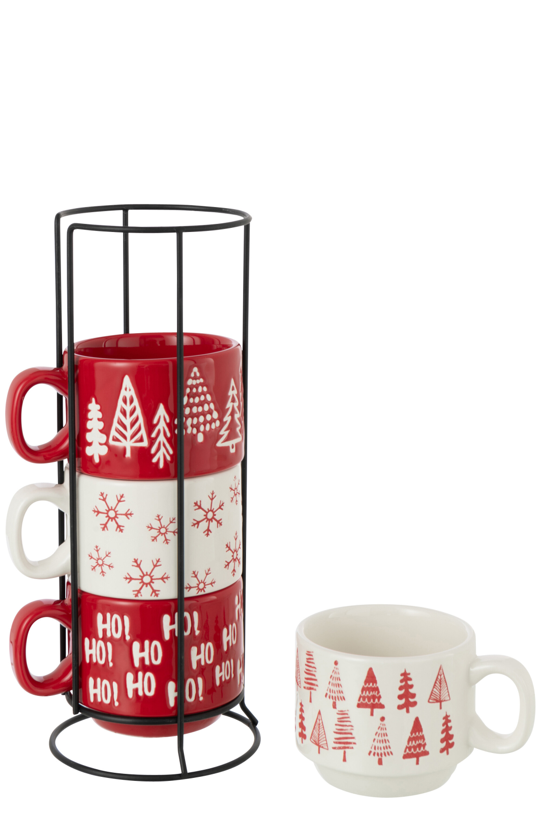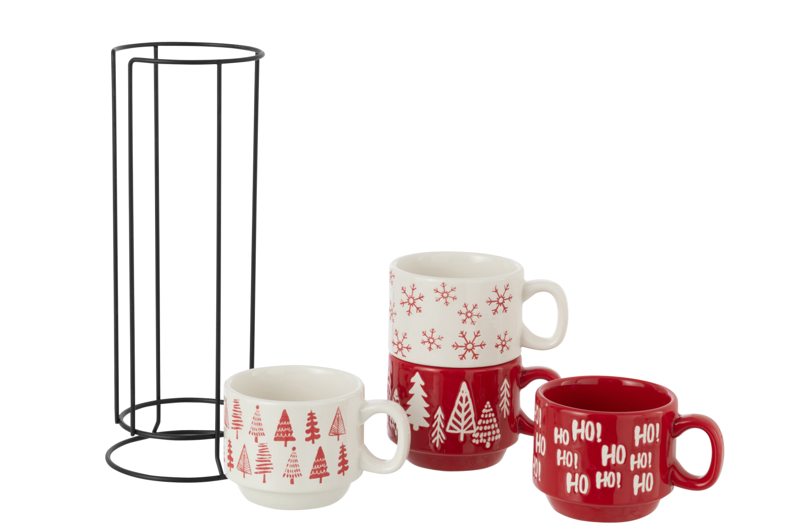 Jolipa Cutie cu 4 cesti de cafea Craciun, Dolomite alb/ rosu | L 16X l 15X H 29.5 cm