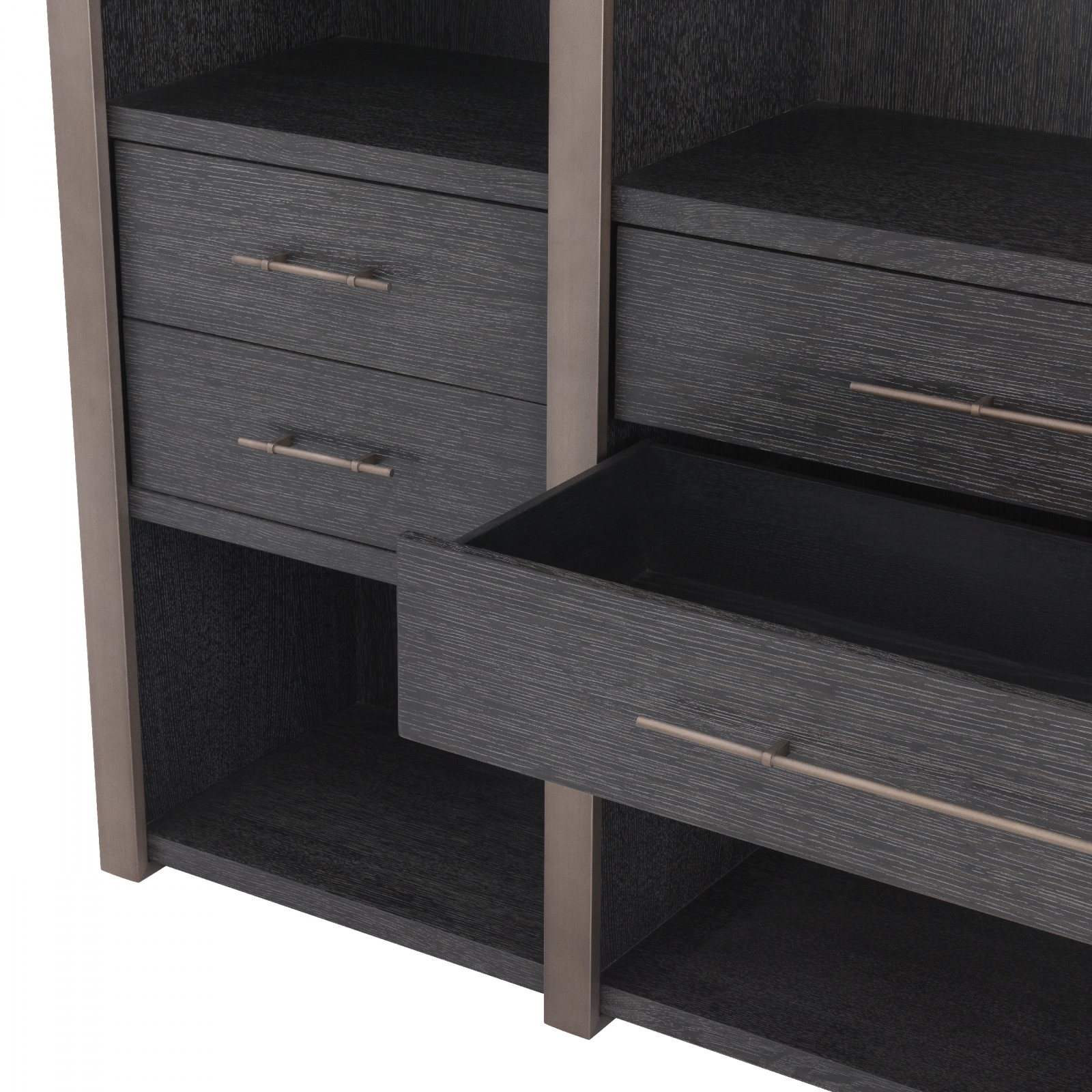 Detalii: finisaj bronz mediu, Furnir stejar gri cărbune