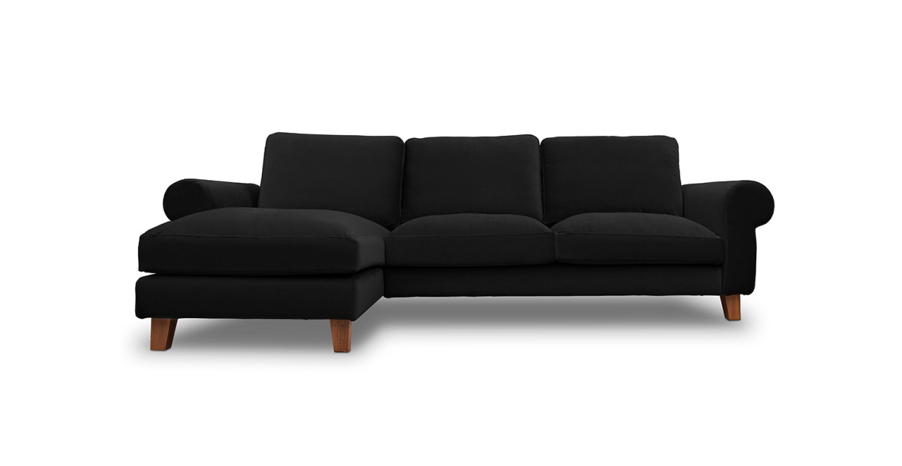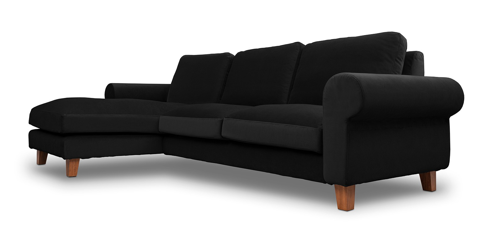 Canapea fixa de 3 locuri, cu brate rotunde si sezlong, disponibila în mai multe variante de culori.