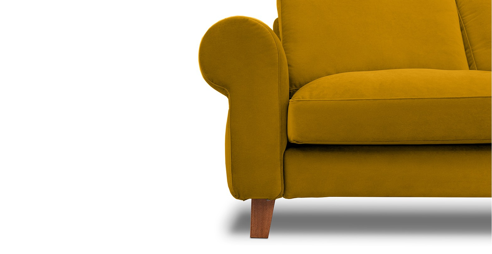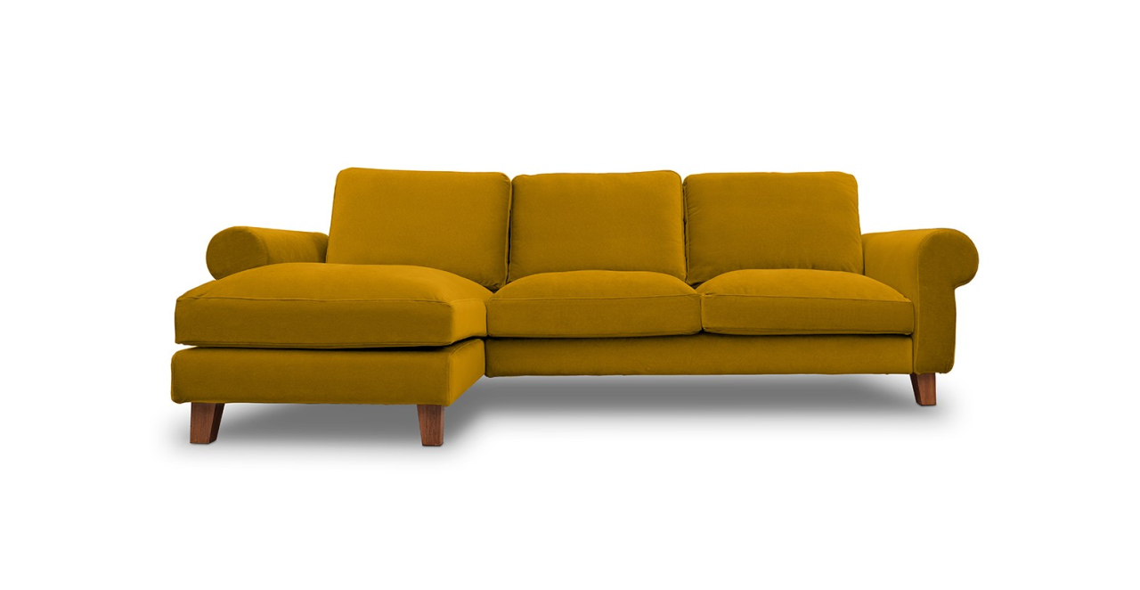Canapea fixa de 3 locuri, cu brate rotunde si sezlong, disponibila în mai multe variante de culori.