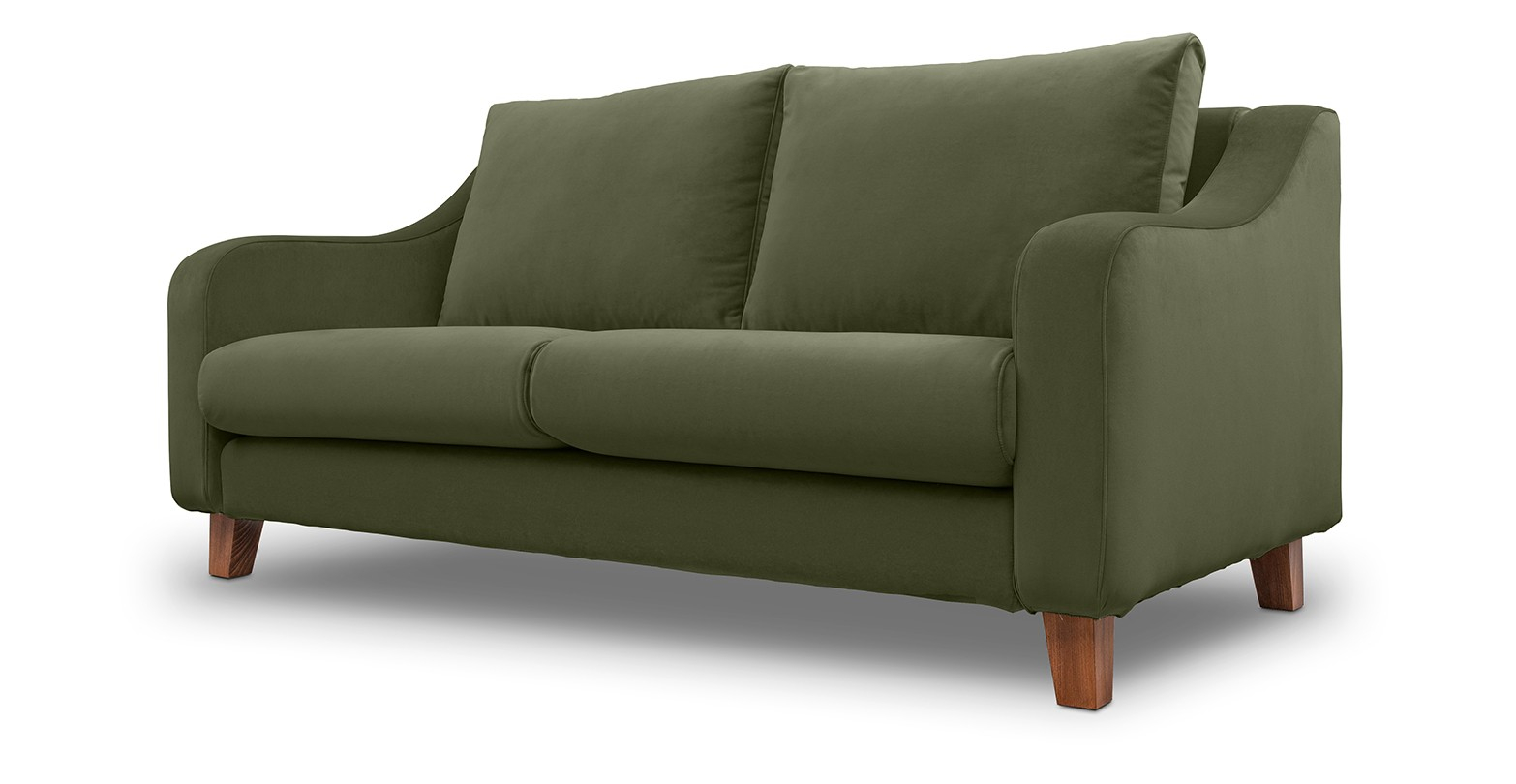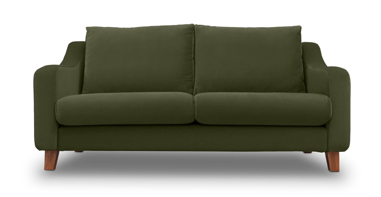 Canapea fixa de 2 locuri, cu brate tip sa si picioare de lemn, disponibila în mai multe variante de culori.