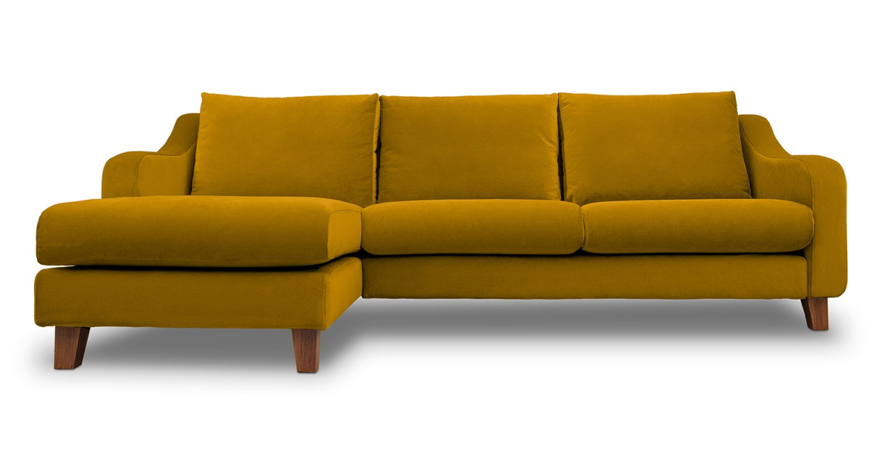 Canapea fixa de 3 locuri, cu brate tip sa si sezlong, disponibila în mai multe variante de culori.