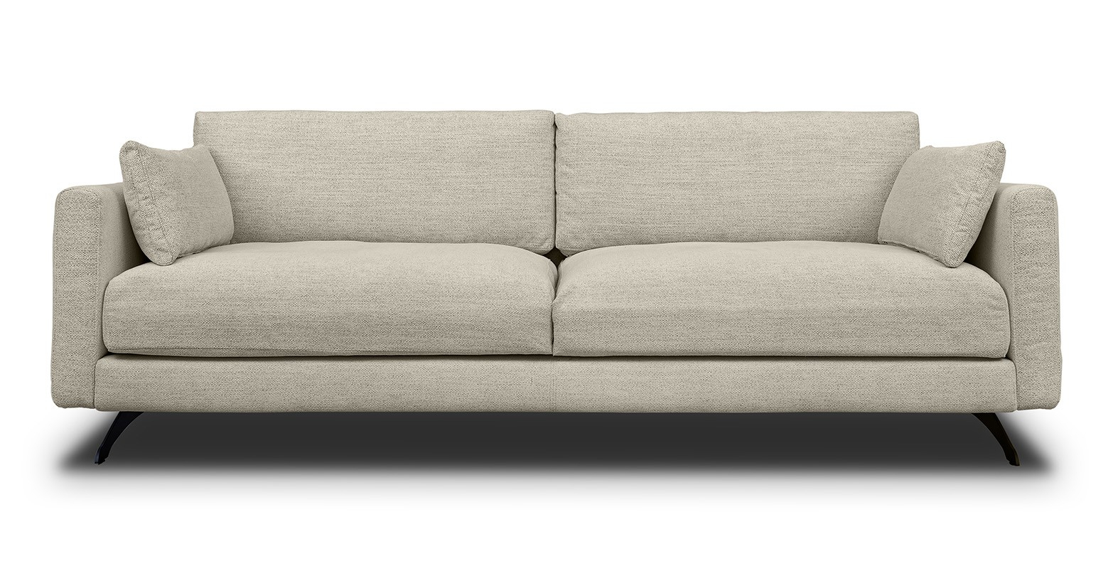 Canapea fixa extra-confortabila, de doua locuri, cu picioare metalice negre si design ultra-modern.