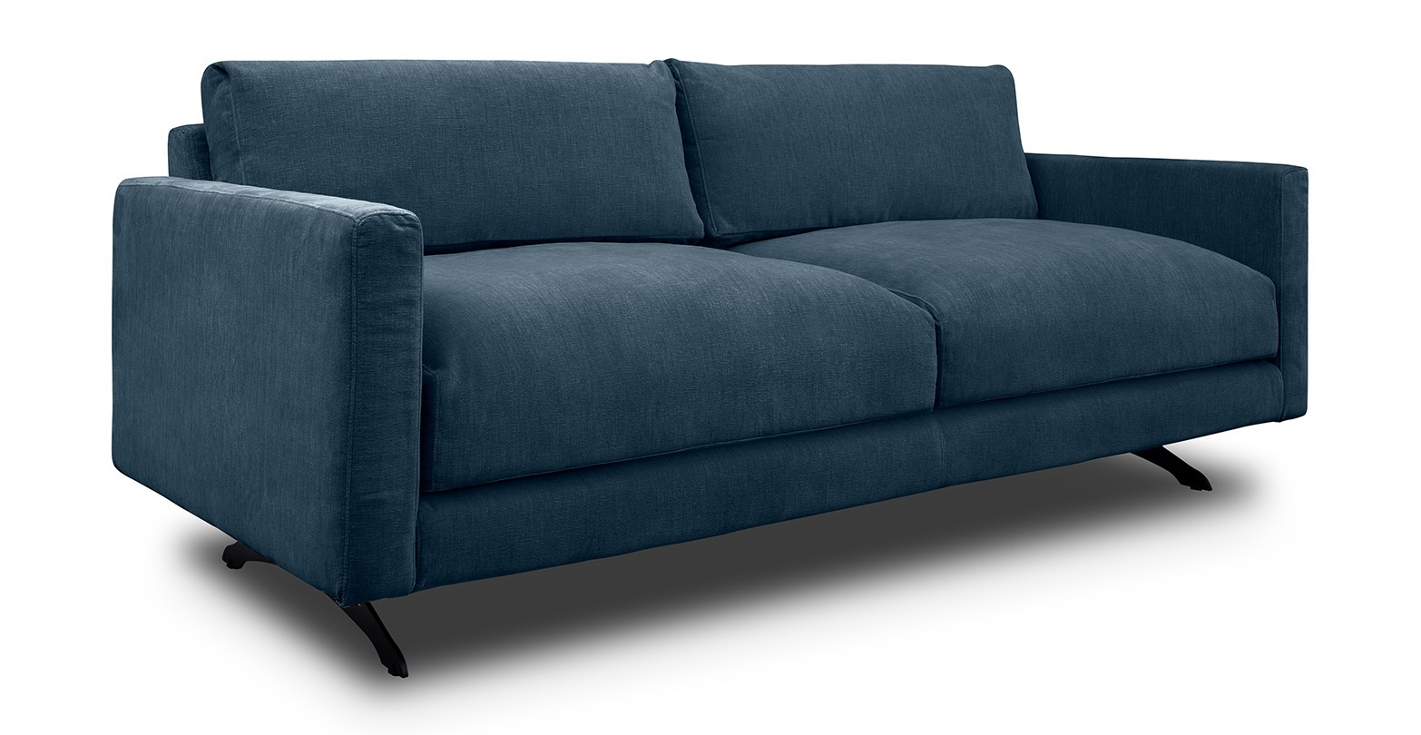 Canapea fixa extra-confortabila, de doua locuri, cu picioare metalice negre si design ultra-modern.
