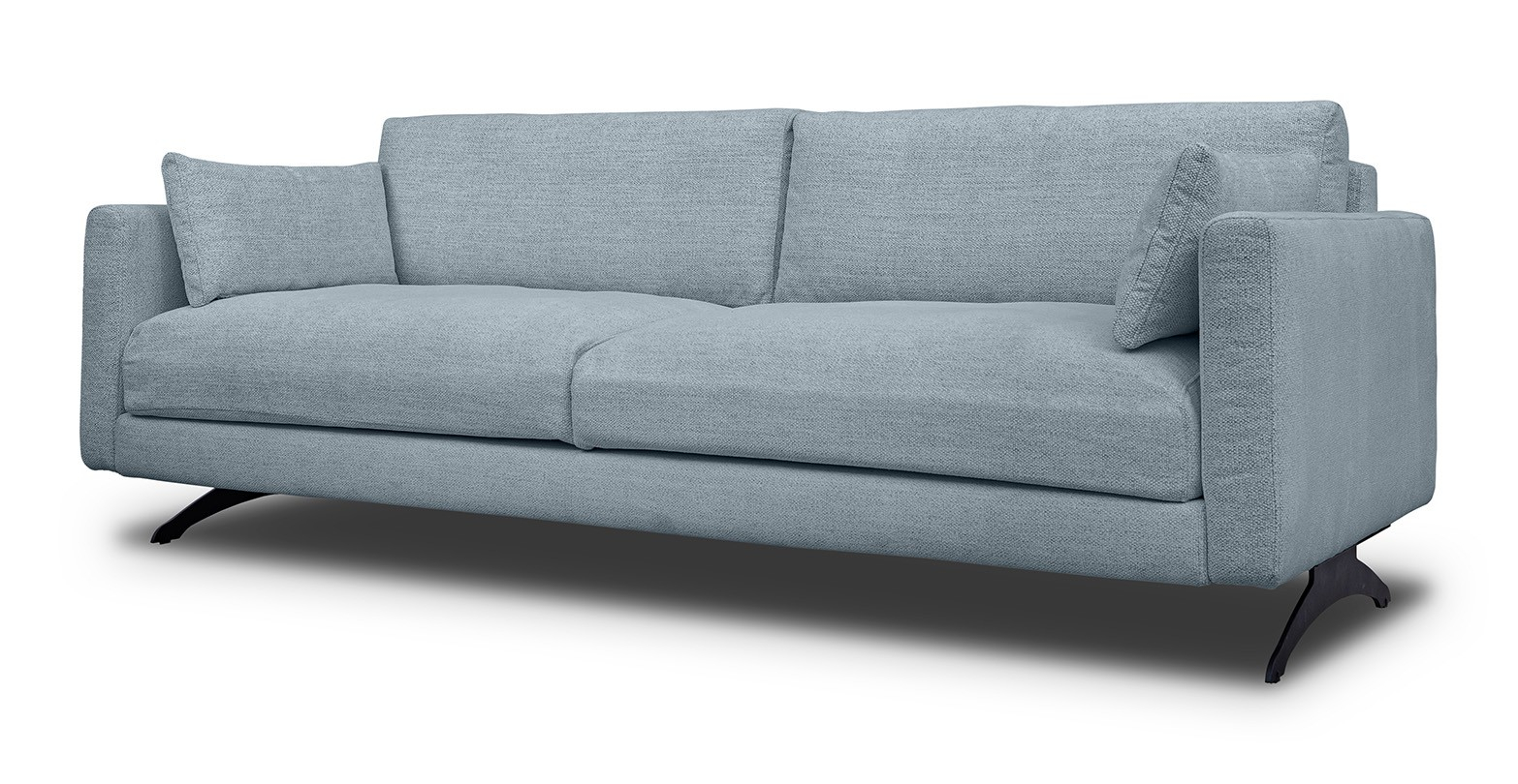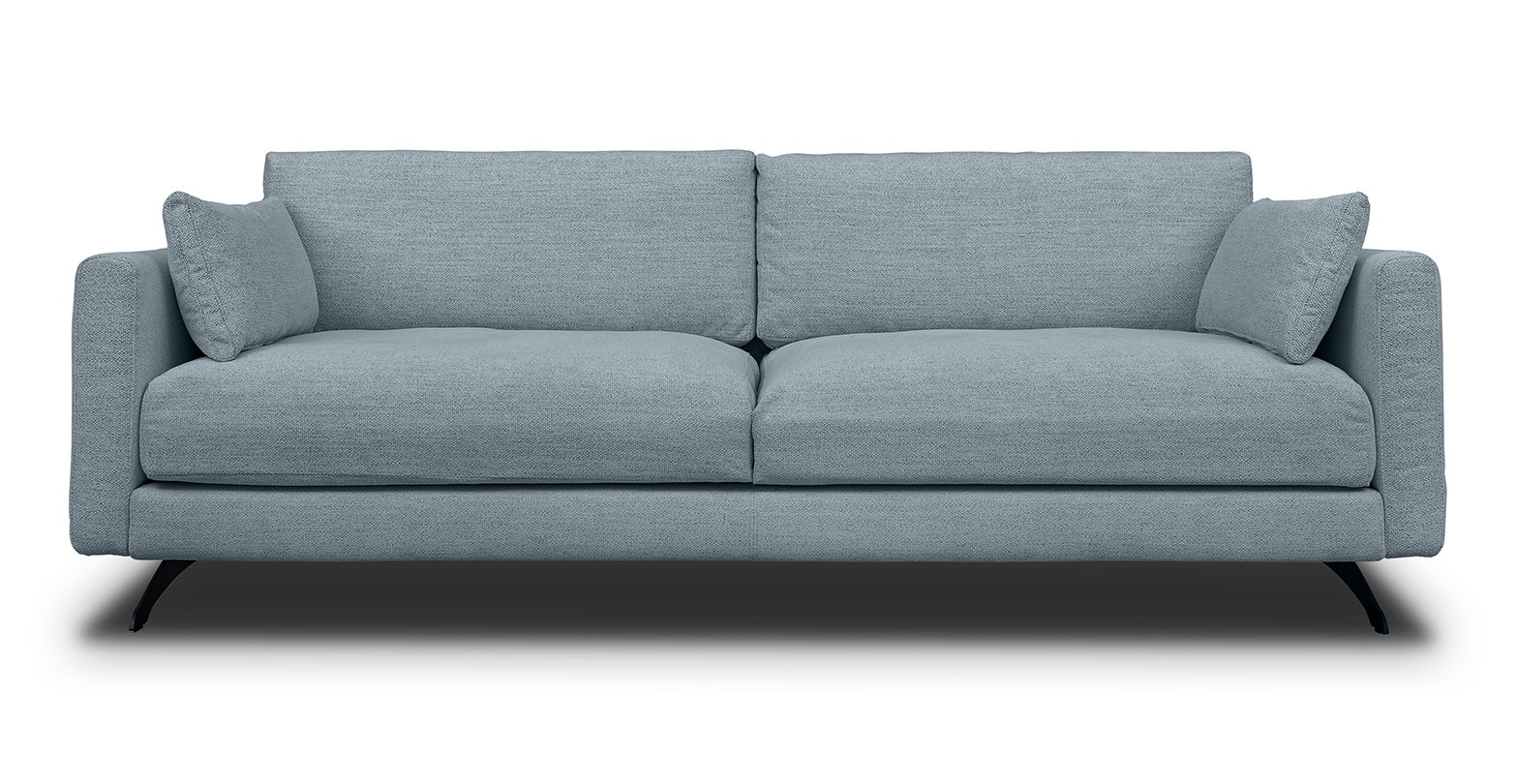 Canapea fixa extra-confortabila, de trei locuri, cu picioare metalice negre si design ultra-modern.