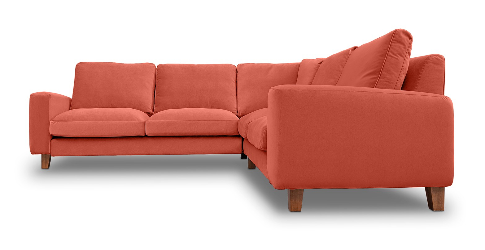Coltar fix de 4 locuri, cu brate drepte si picioare de lemn, disponibila în mai multe variante de culori.