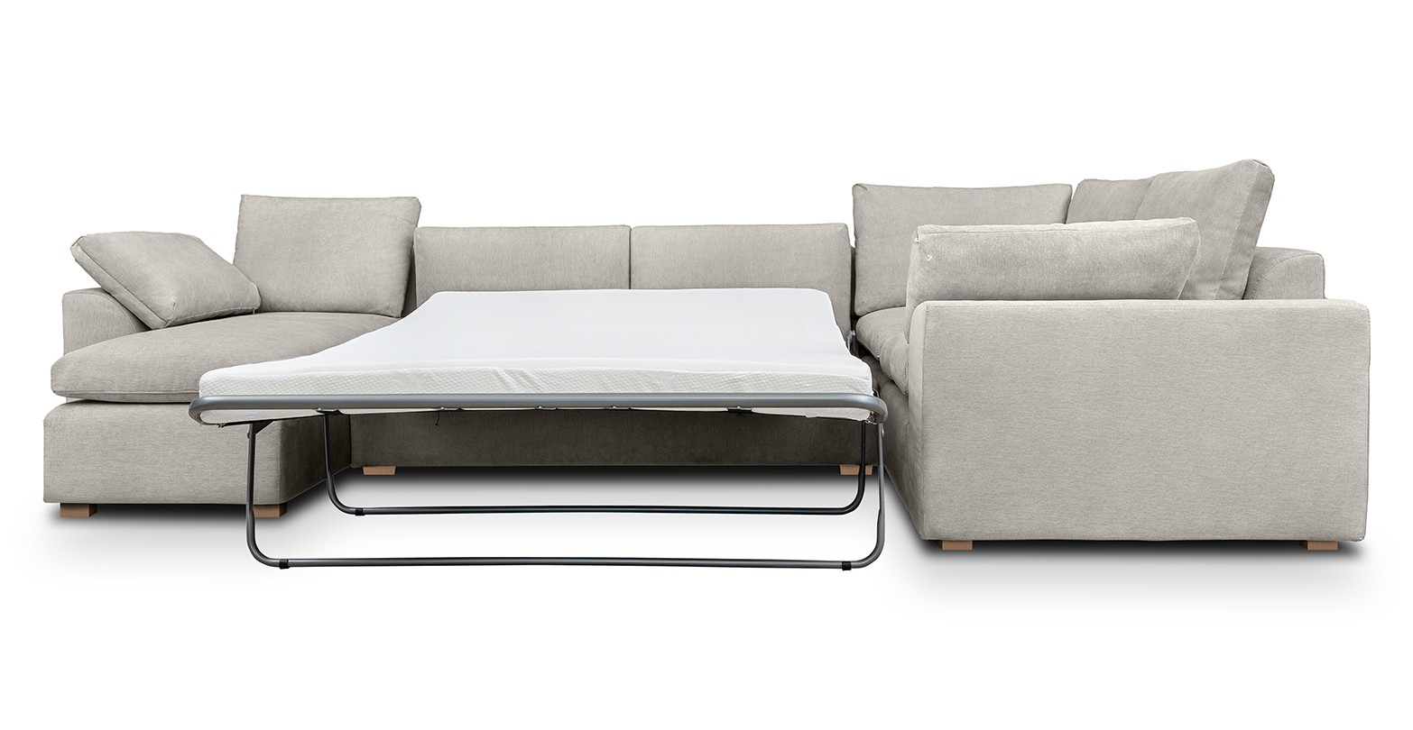 Caracteristici si atuuri: ✓ Produsul are 13 perne: 5 la șezut, 6 la spătar și 2 la brațe, care asigură un nivel foarte ridicat de confort. ✓ Este o piesă multifuncțională: poate fi folosită atât cu rol de canapea în living, cât și ca dormitor într-un spațiu cu mai multe roluri. ✓ Include în componența sa o saltea de dormitor încorporată printr-un sistem inteligent de extensie. ✓ Tapițeria, cu aspect foarte plăcut la atingere, este complet detașabilă și poate fi curățată oridecâte ori este cazul sau nevoie de reîmprospătarea țesăturii.