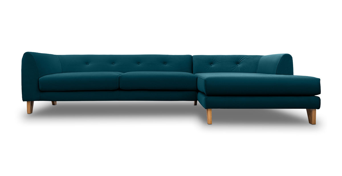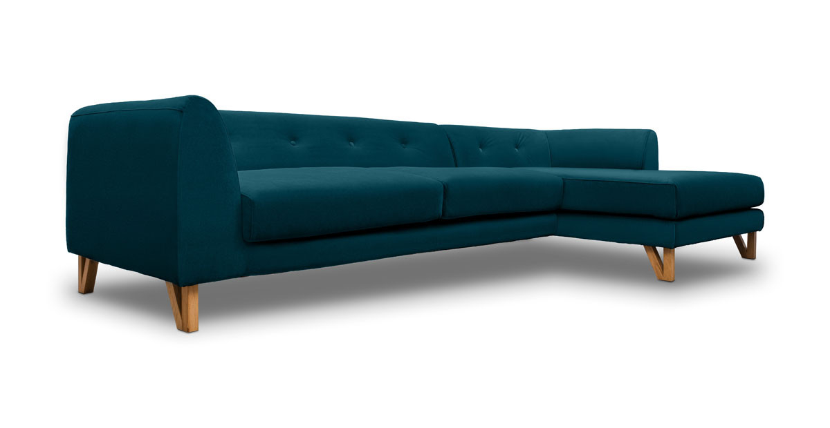 Canapea Eddie de trei locuri cu sezlong, disponibila pe mai multe variante de culori.