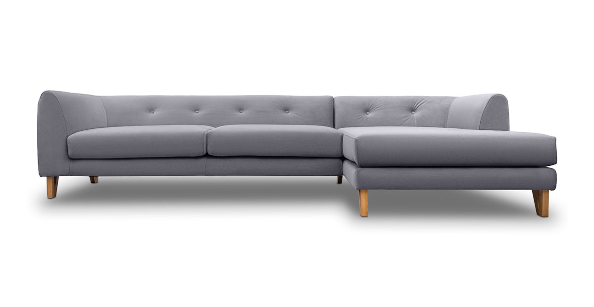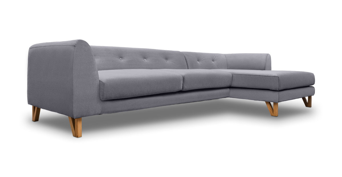Canapea Eddie de trei locuri cu sezlong, disponibila pe mai multe variante de culori.