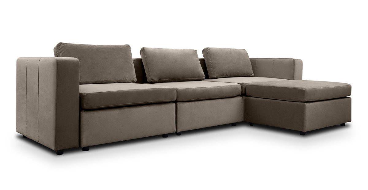 Canapea Module de 3 locuri cu sezlong este o canapea confortabila si configurabila, ideala pentru spatiile de dimensiuni medii sau largi.