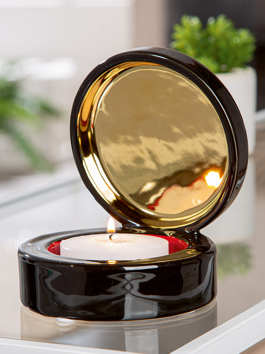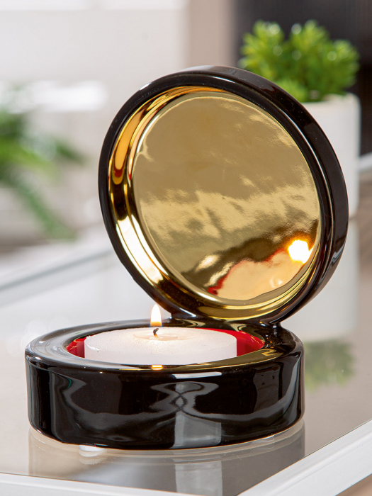Cutie de bijuterii, Suport lumanare, Milan, Ceramica, negru, auriu, roșu, PU 4, H. 13,5 cm, D. 11 cm