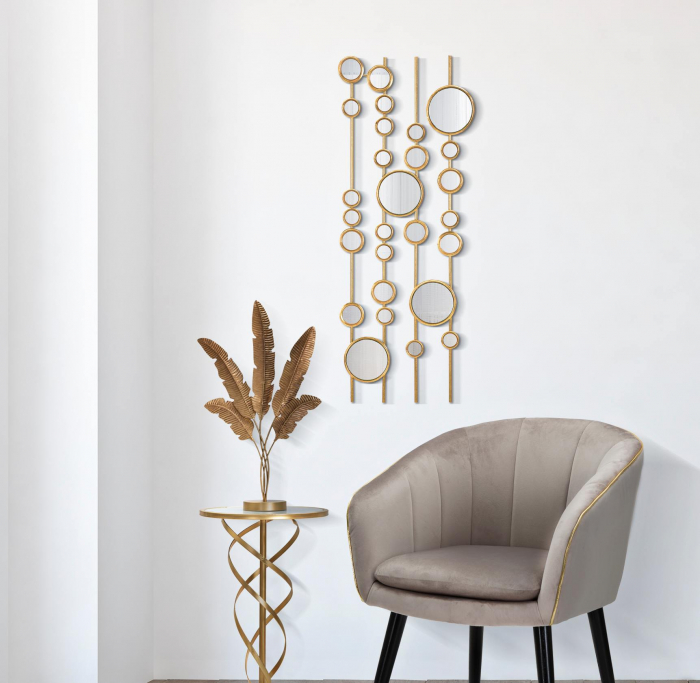 Mauro Ferretti Decoratiune de perete Small Mirrors, Fier/Oglinda, Auriu, 90x35.5x1.5 cm
