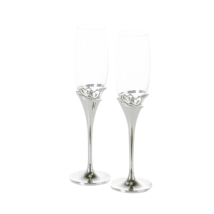 GILDE Set 2 pahare sampanie Hearts, metal/sticla, argintiu, 27x7 cm