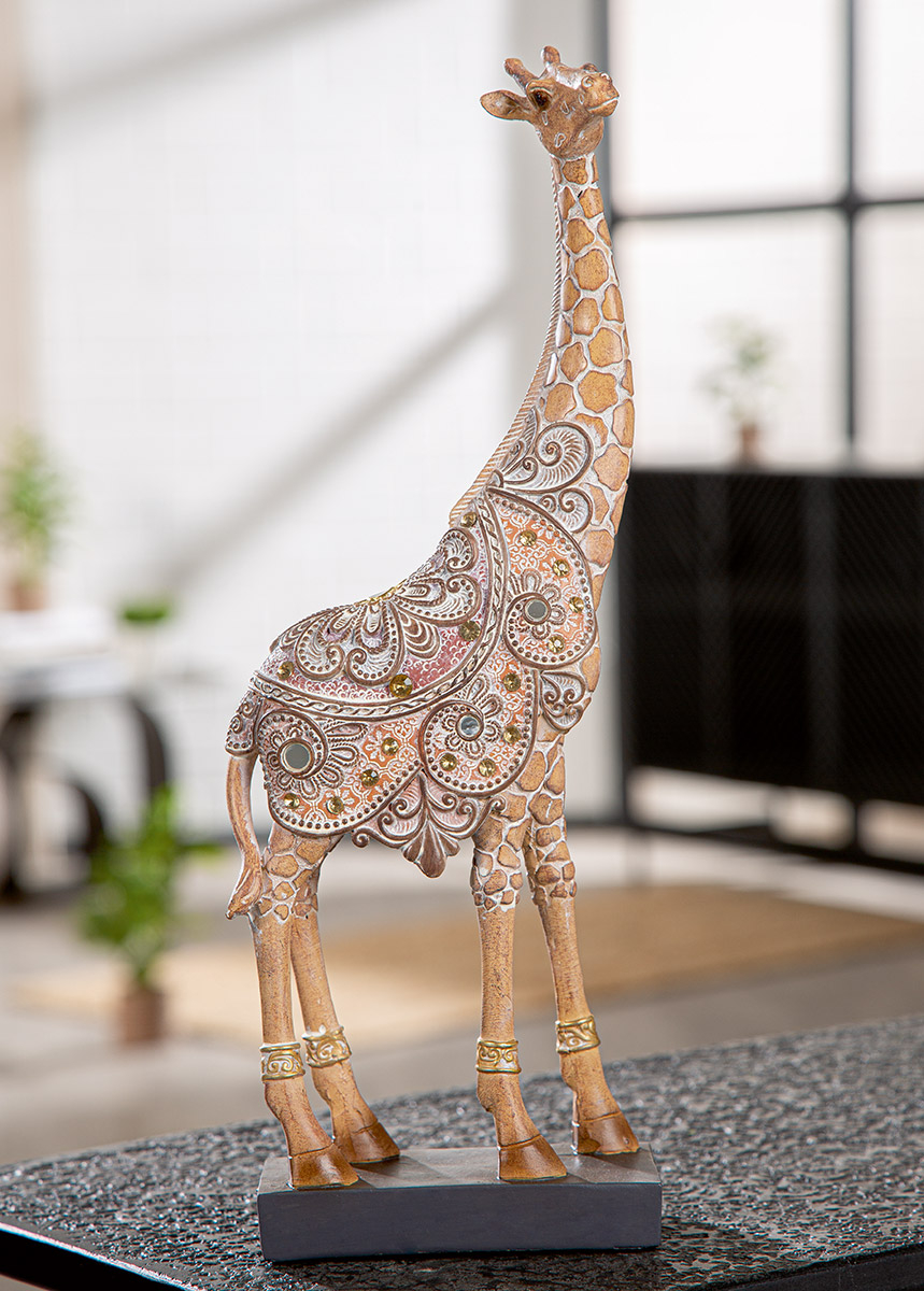GILDE Figurină, Girafă, Motiv oglindă, oriental, Rășină sintetică, maro, PU 2, L. 6 cm, L. 13 cm, H 36 cm