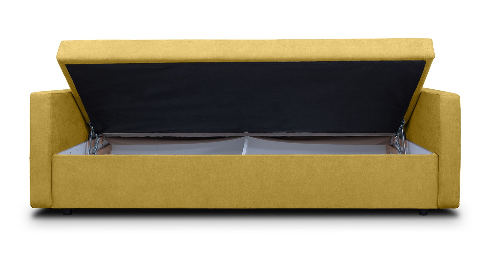 Canapea Clara, simpla si practica, extensibila si cu lada de depozitare.