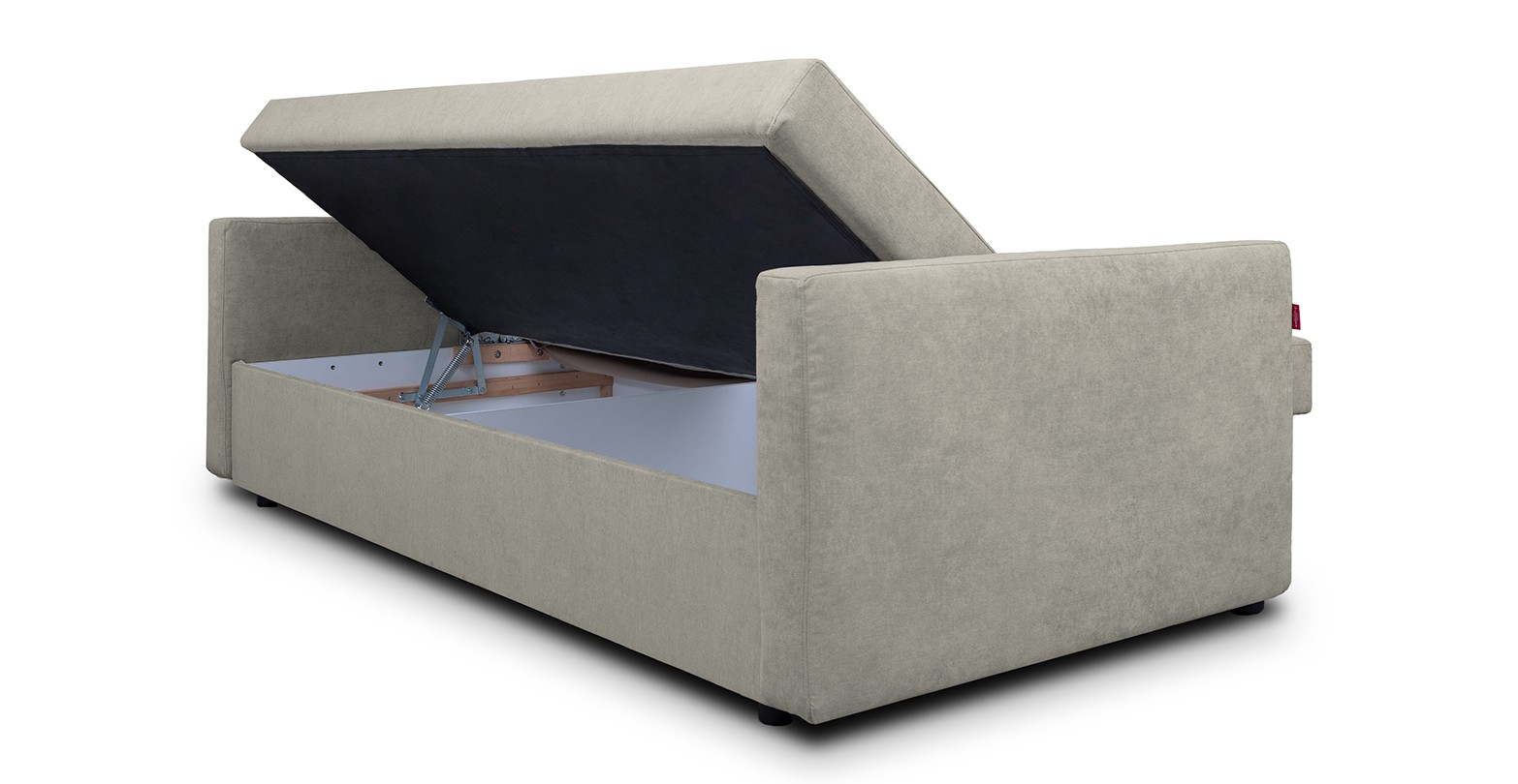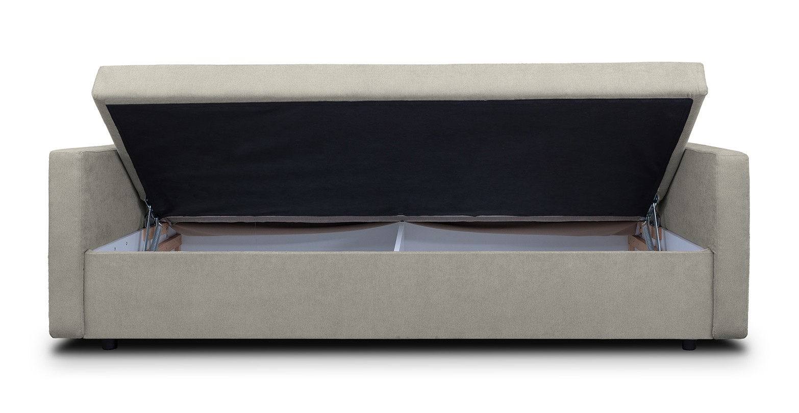Canapea Clara, simpla si practica, extensibila si cu lada de depozitare.