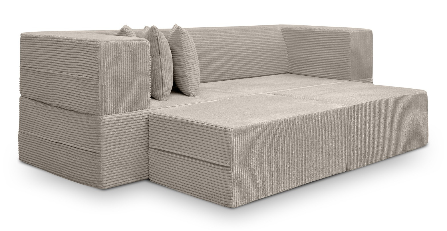 Caracteristici si atuuri: ✓ Asigură o poziție corectă și a spatelui prin designul ei ergonomic ✓ Este modulară, practică, flexibilă și extensibilă ✓ Se transformă foarte ușor în pat de dormitor, include doi tabureți care pot fi folosiți chiar și de post de măsuță cafea ✓ Este însoțită de două perinițe asoratate ✓ Poate fi completată cu unul sau două fotolii din aceeași gamă, cu tapițerie de aceeași sau de diferite culori ✓ Se integrează cu ușurință în spațiile cu capacități reduse ✓ Ideală și pentru copiii de toate vârstele, nu prezintă niciun risc de accidentare sau lovire în elemente dure ✓ Are husă detașabilă, cu fermoar, care poate fi curățată cu ușurință ✓ Beneficiează de 2 ani garanție durabilitatea spumei, husa nu intra in incidenta garantiei.