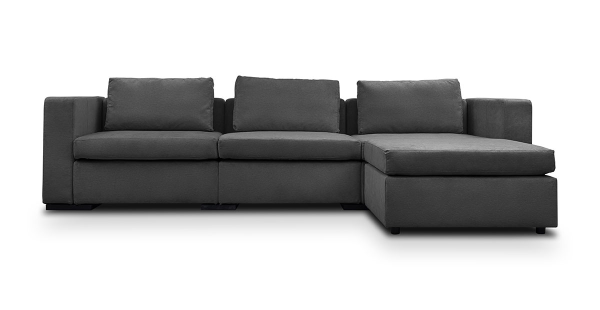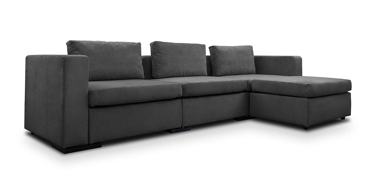 Canapea Module de 3 locuri cu sezlong este o canapea confortabila si configurabila, ideala pentru spatiile de dimensiuni medii sau largi.