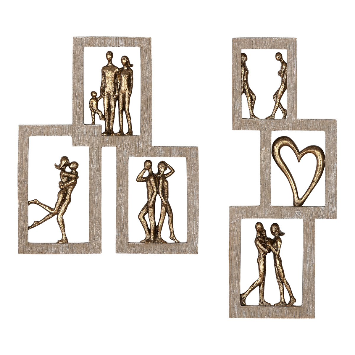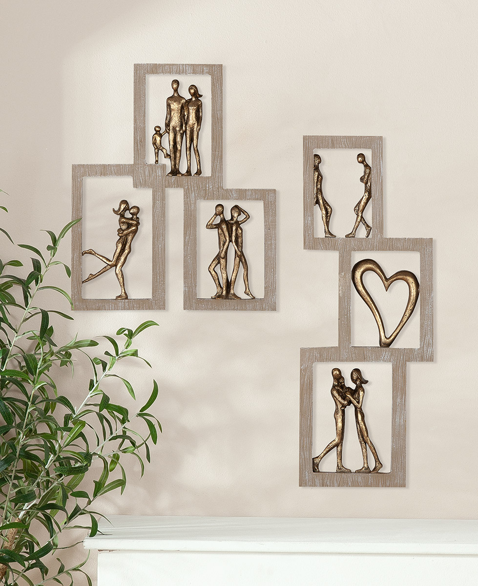 Obiect de perete, Familie, Inimă, Cuplu, Afecțiune, Polirășină, ecru, PU 2, 2 buc. asortate, L. 2 cm, L. 22 cm, H. 26 cm