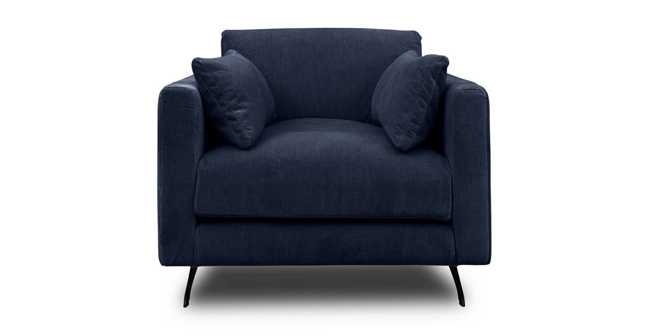 Fotoliu tapitat Moft este un fotoliu ultra-modern, cu picioare metalice negre si care vine însotit de doua perne în plus.