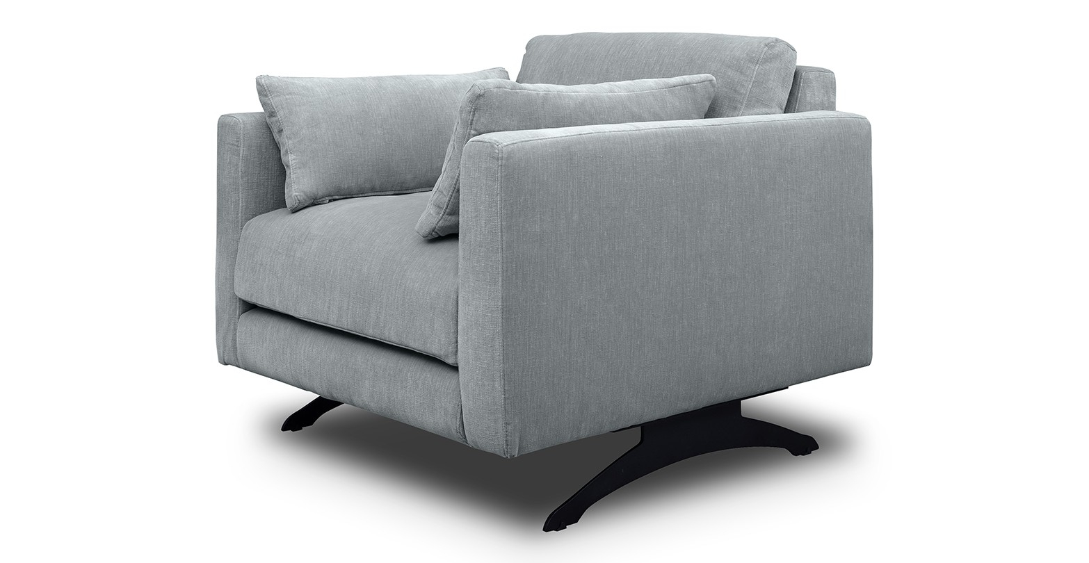 Fotoliu tapitat Moft este un fotoliu ultra-modern, cu picioare metalice negre si care vine însotit de doua perne în plus.