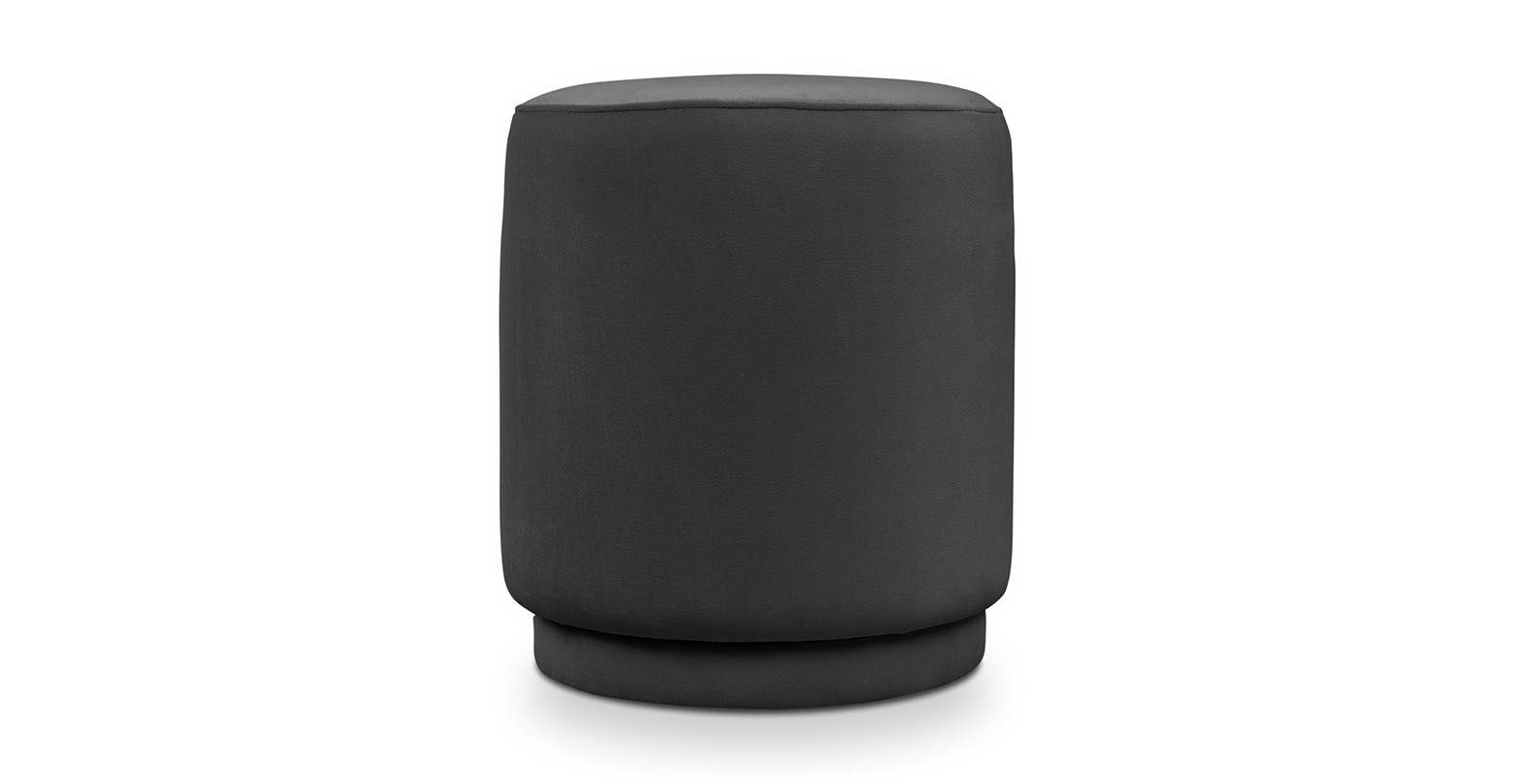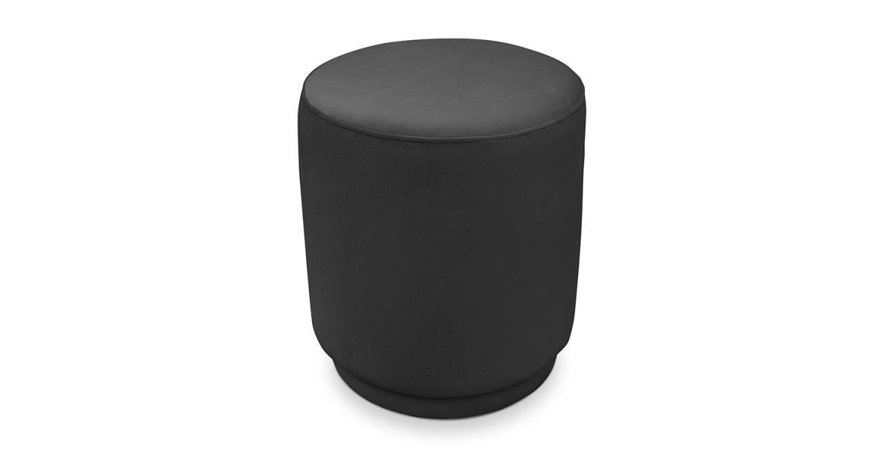 Taburet tapitat, cu design elegant si baza tip soclu, de talie mica.