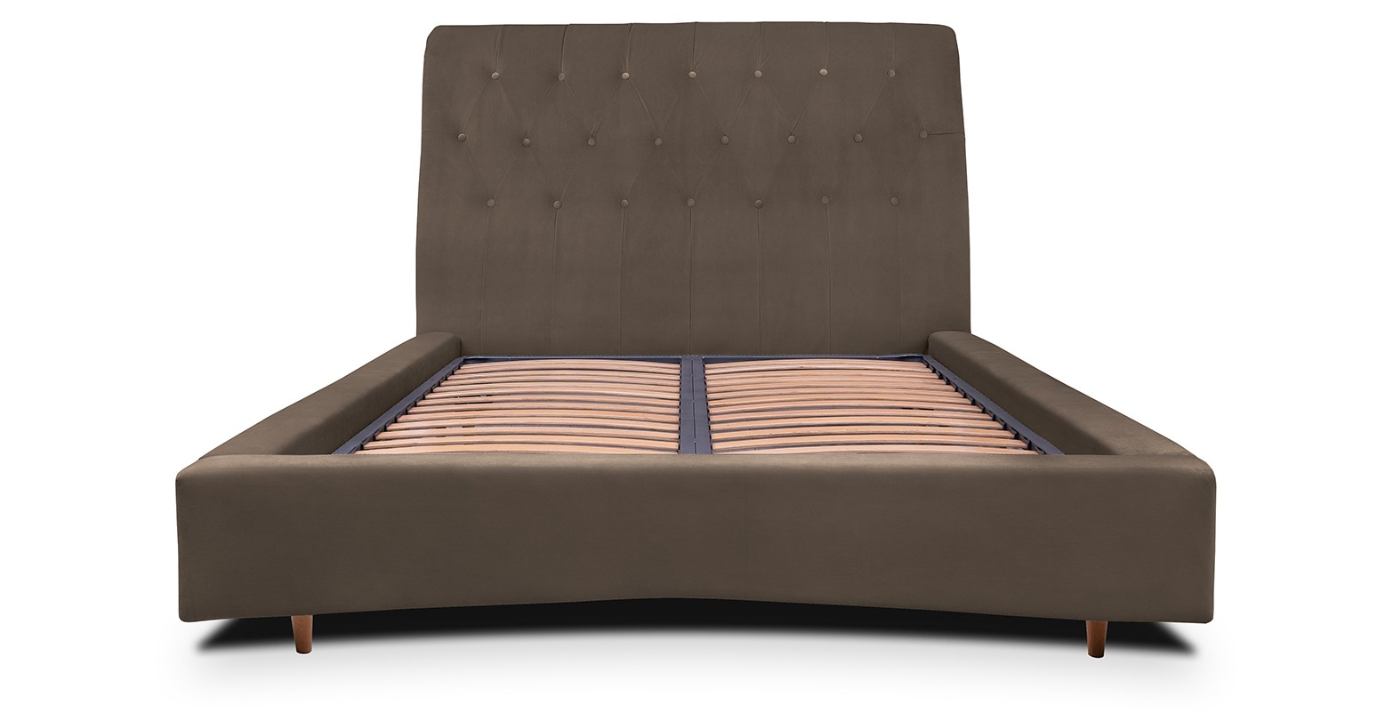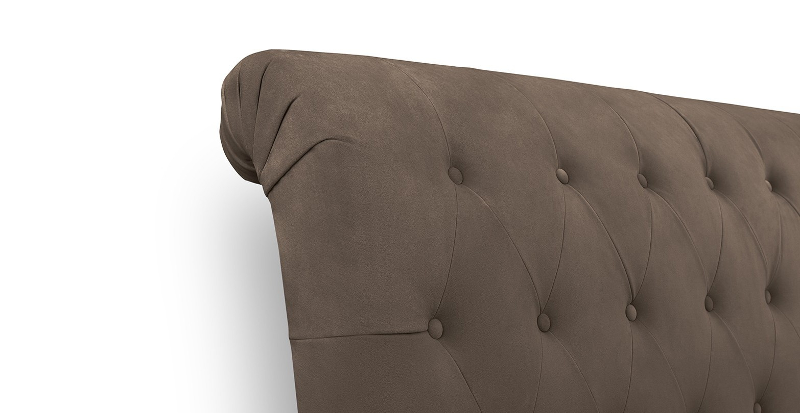 Pat tapitat, cu tetiera rotunjita si nasturi.