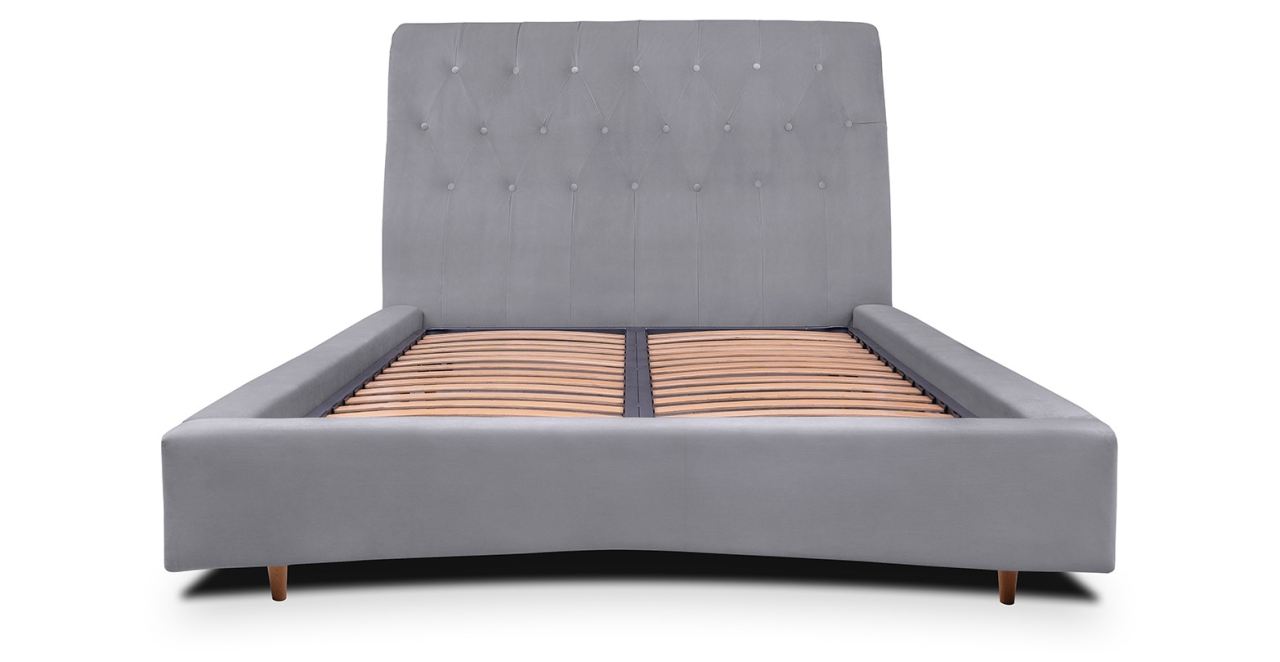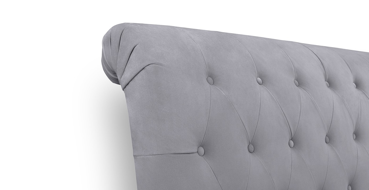 Pat tapitat, cu tetiera rotunjita si nasturi.
