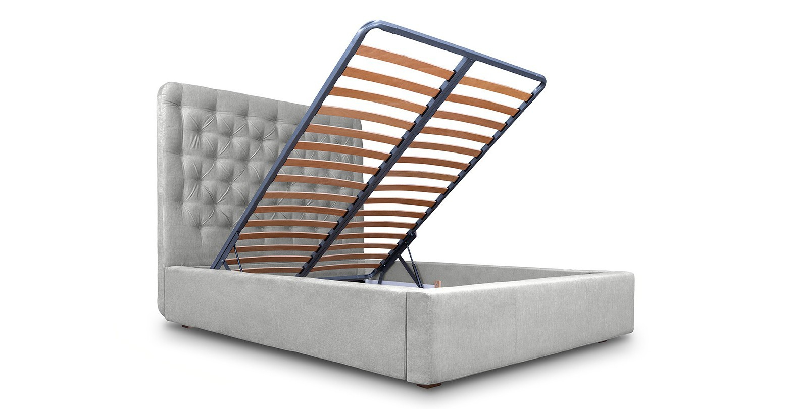 Caracteristici si atuuri: ✓ Patul include somieră cu sistem rabatabil, care are lamele din lemn de fag, care permite menținerea aerisirii corecte a saltelei și acces facil la lada de depozitare ✓ Spațiul de depozitare al patului este foarte generos, punând la dispoziție întreg perimetrul patului ✓ Cadrul patului are în componența sa un strat generos de spumă poliuretanică, oferind camerei o senzație de volumetrie ✓ Fermitatea spumei din componență asigură longevitatea produsului în timp și păstrarea calităților estetice ✓ Stofa din care este realizat patul are o textură catifelată, cu reflexii ce oferă un aspect elegant și modern