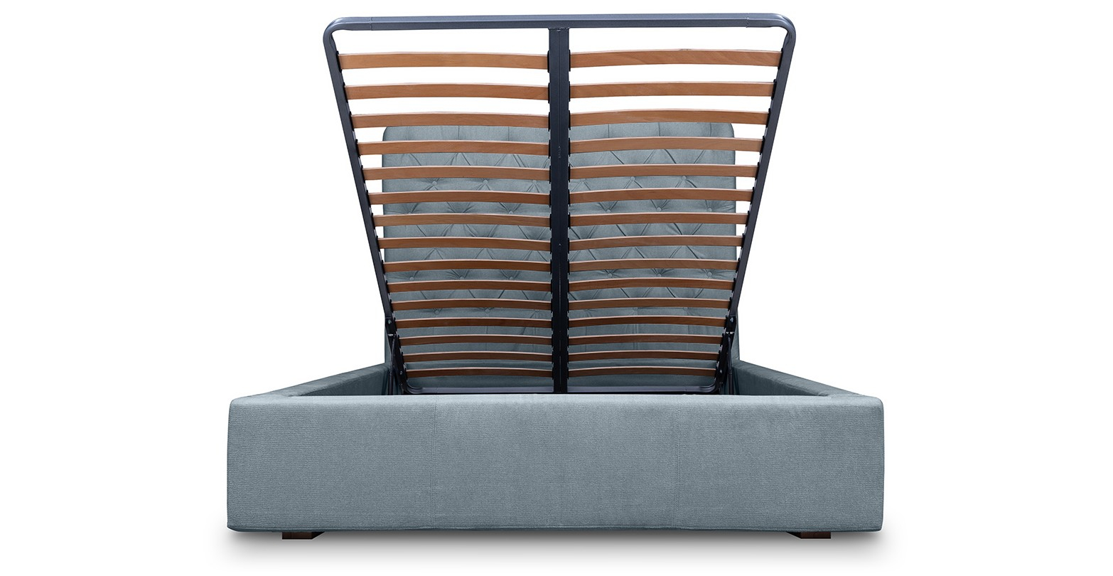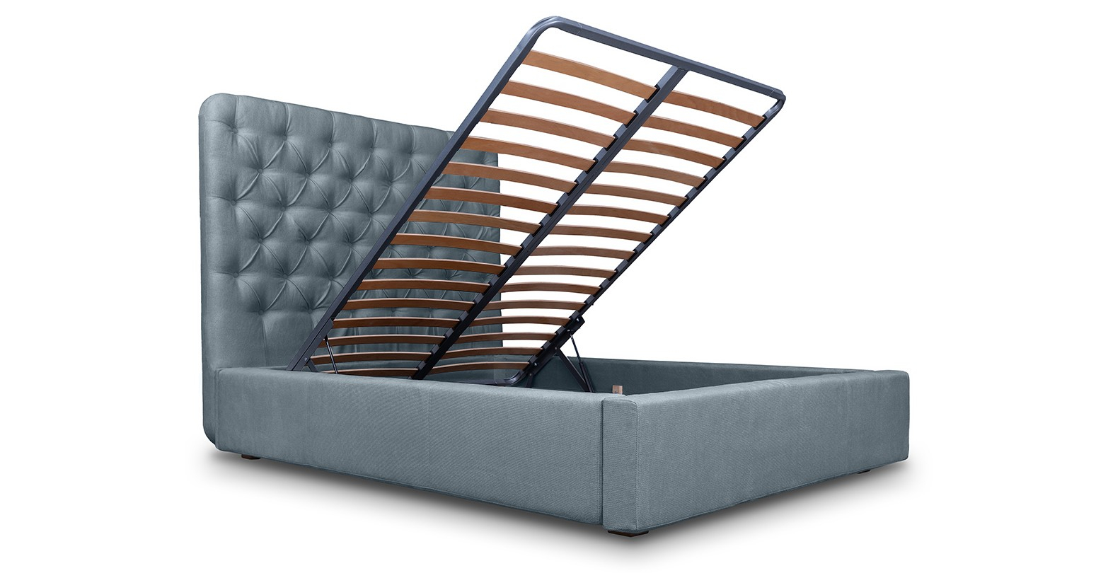 Caracteristici si atuuri: ✓ Patul include somieră cu sistem rabatabil, care are lamele din lemn de fag, care permite menținerea aerisirii corecte a saltelei și acces facil la lada de depozitare ✓ Spațiul de depozitare al patului este foarte generos, punând la dispoziție întreg perimetrul patului ✓ Cadrul patului are în componența sa un strat generos de spumă poliuretanică, oferind camerei o senzație de volumetrie ✓ Fermitatea spumei din componență asigură longevitatea produsului în timp și păstrarea calităților estetice ✓ Stofa din care este realizat patul are o textură catifelată, cu reflexii ce oferă un aspect elegant și modern