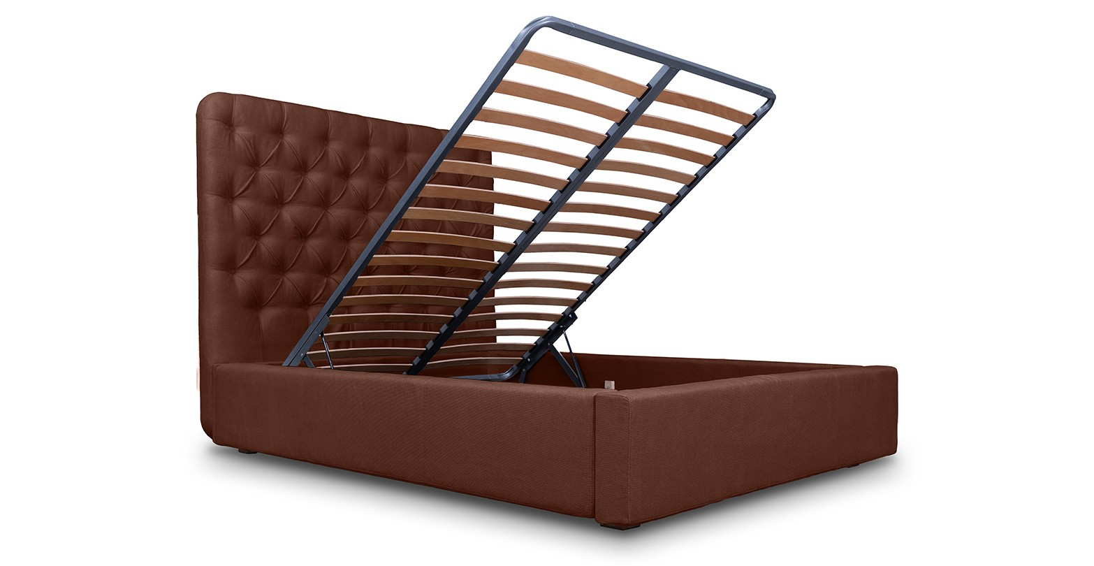 Caracteristici si atuuri: ✓ Patul include somieră cu sistem rabatabil, care are lamele din lemn de fag, care permite menținerea aerisirii corecte a saltelei și acces facil la lada de depozitare ✓ Spațiul de depozitare al patului este foarte generos, punând la dispoziție întreg perimetrul patului ✓ Cadrul patului are în componența sa un strat generos de spumă poliuretanică, oferind camerei o senzație de volumetrie ✓ Fermitatea spumei din componență asigură longevitatea produsului în timp și păstrarea calităților estetice ✓ Stofa din care este realizat patul are o textură catifelată, cu reflexii ce oferă un aspect elegant și modern