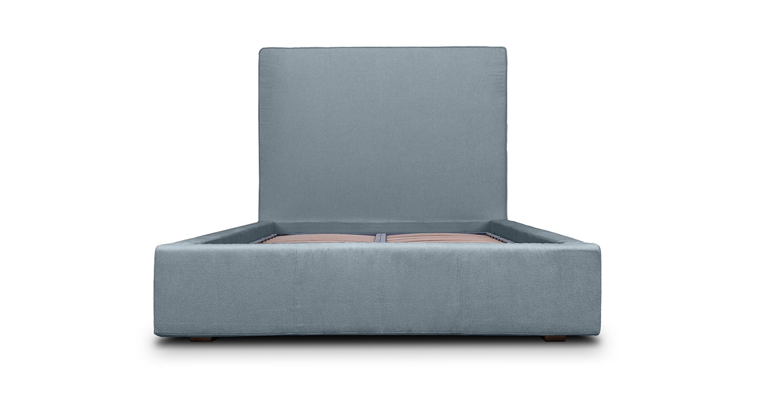 Pat tapitat, cu lada de depozitare si somiera rabatabila disponibil în mai multe dimensiuni si variante de culori.