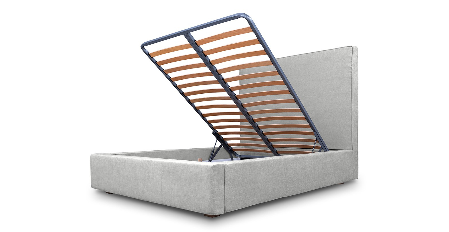 Pat tapitat, cu lada de depozitare si somiera rabatabila disponibil în mai multe dimensiuni si variante de culori.