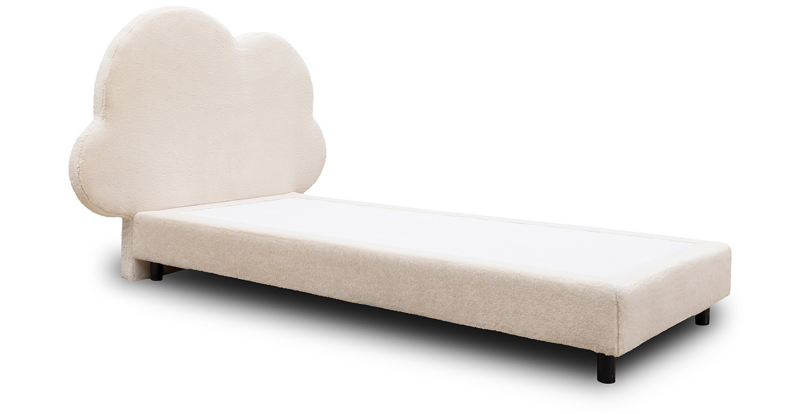 Pat tapitat, cu tetiera în forma de nor, elegant si confortabil.