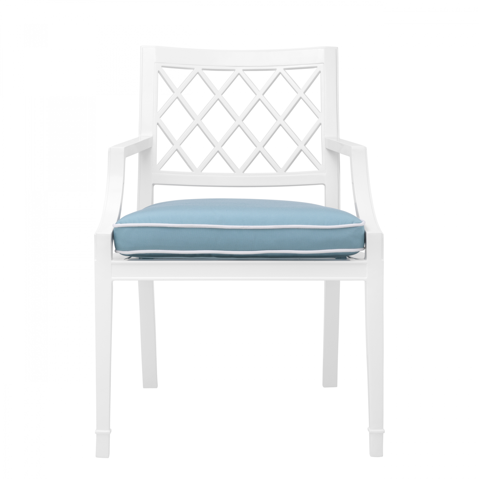 Scaun pentru exterior, Paladium cu brat alb, textil sunbrella albastru mineral, Dims: W. 60 | D. 66 | H. 87 | SD. 55 | SH. 50 | AH. 64.5 (CM)