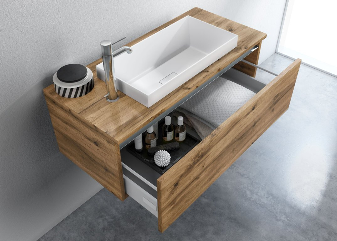 Set de baie cu 3 piese PERTH, Melamina/Aluminiu/Abs/Sticla/Rasina/Metal, Maro deschis, 100x45x190 cm