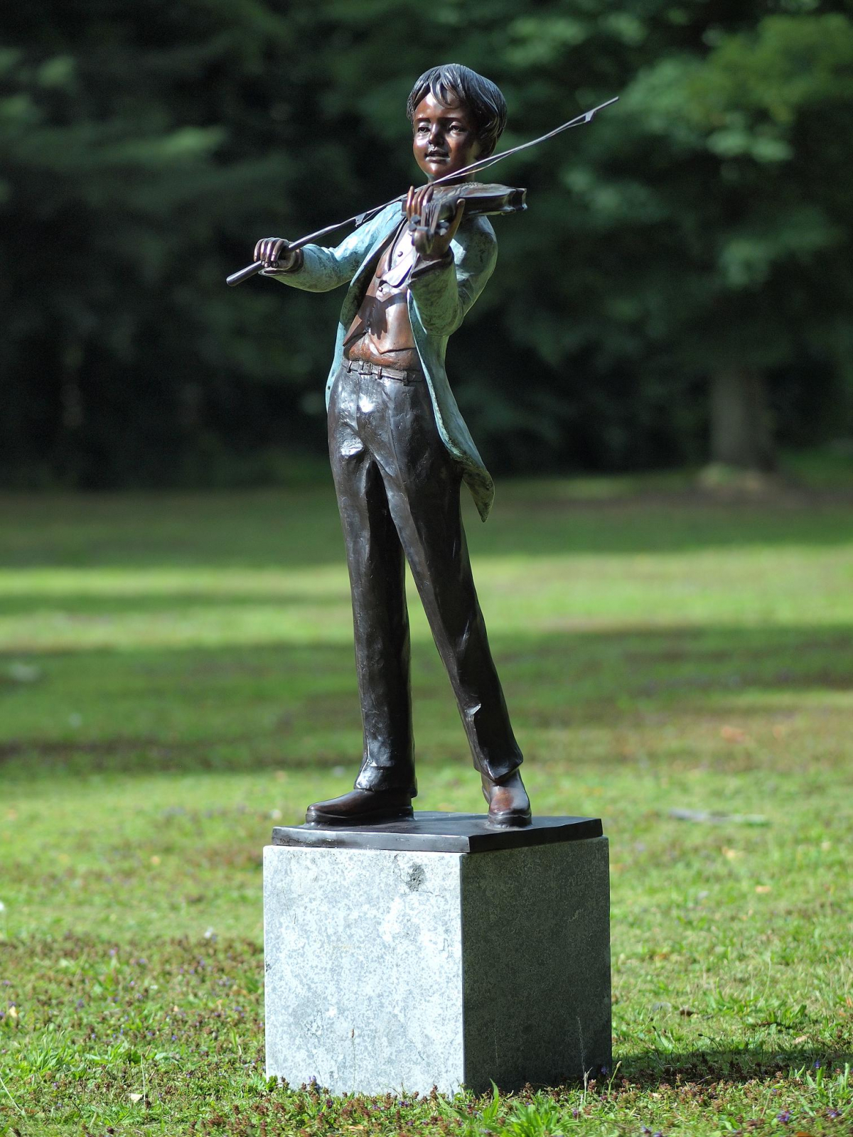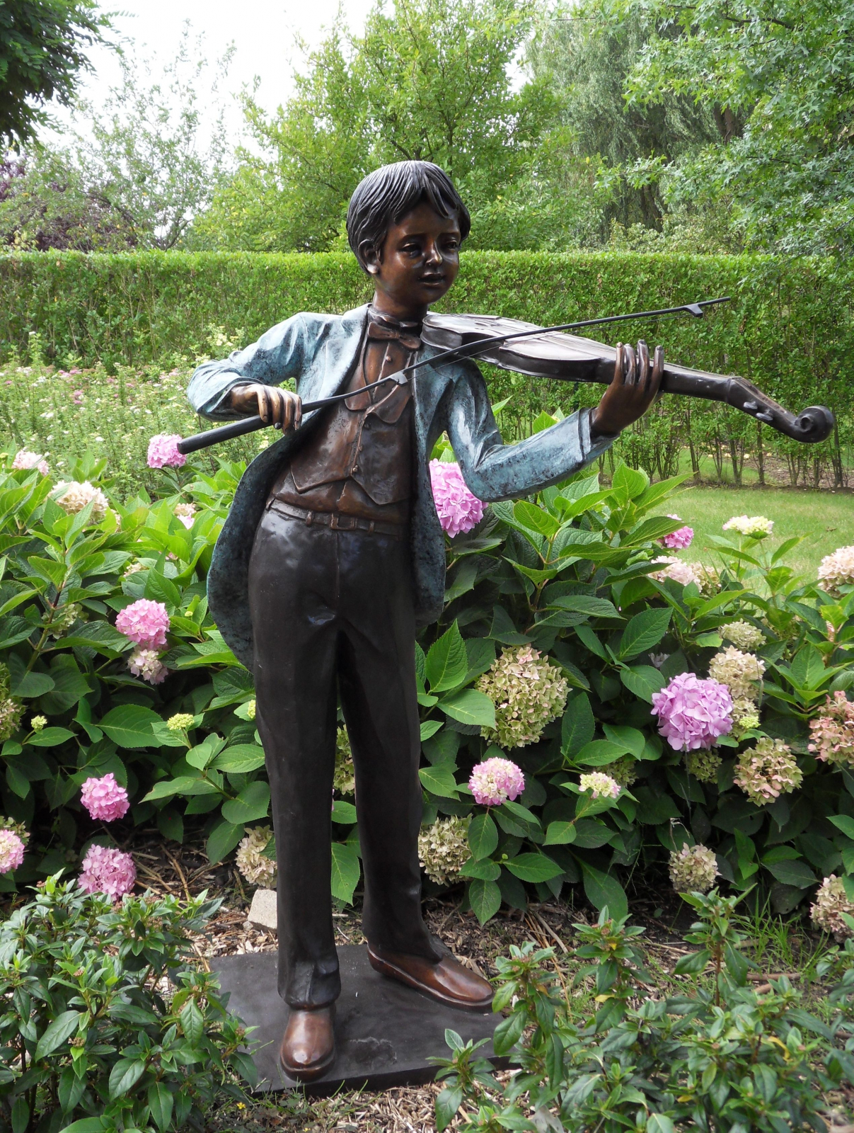 Thermobrass Statuie baiat care canta la vioara, Bronz, 133 X 76 X 89 cm