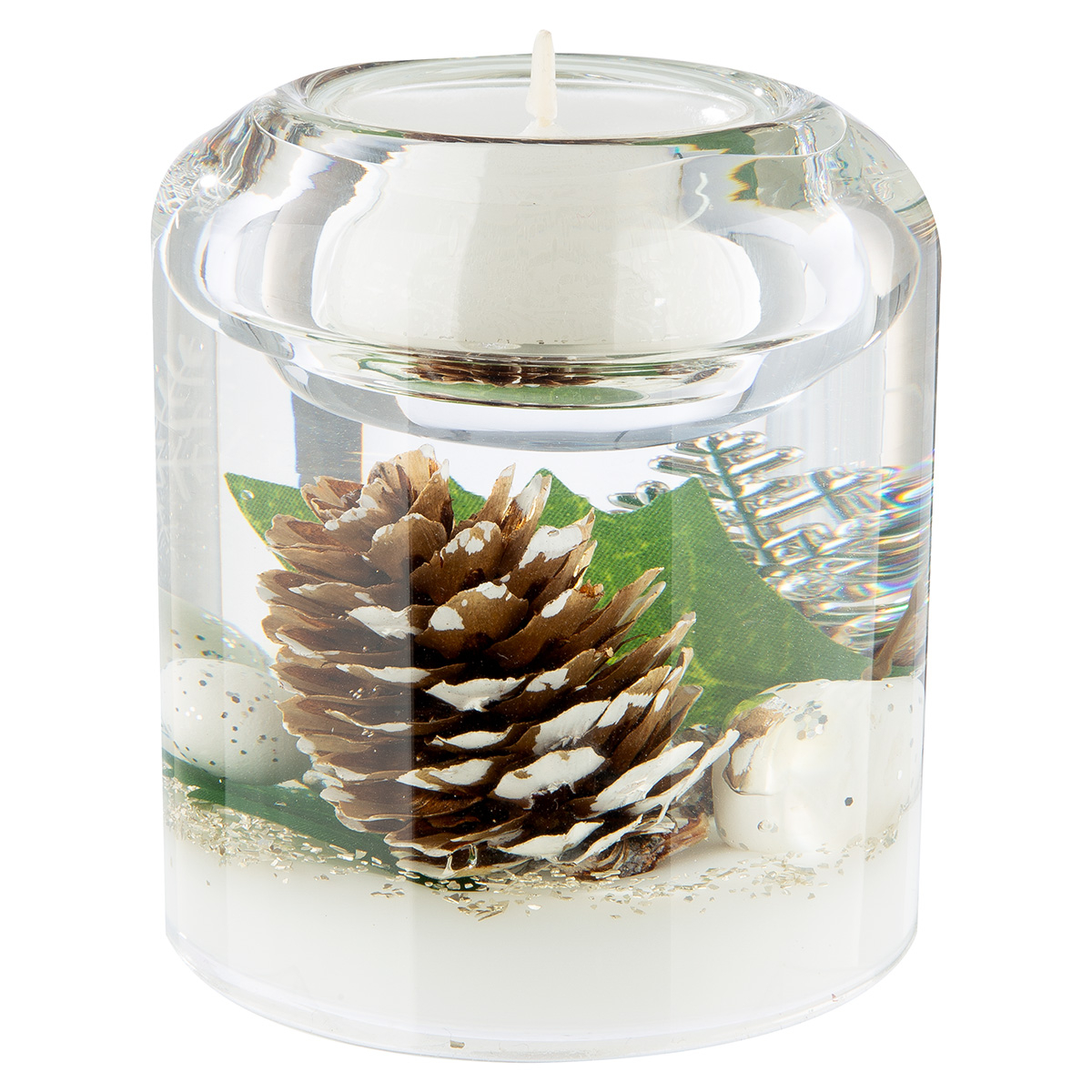 Dreamlight, Suport lumanare tip tealight, Candela Smart, „Winter Time”, Sticla, verde, alb, PU 6, H 8 cm, A. 7 cm