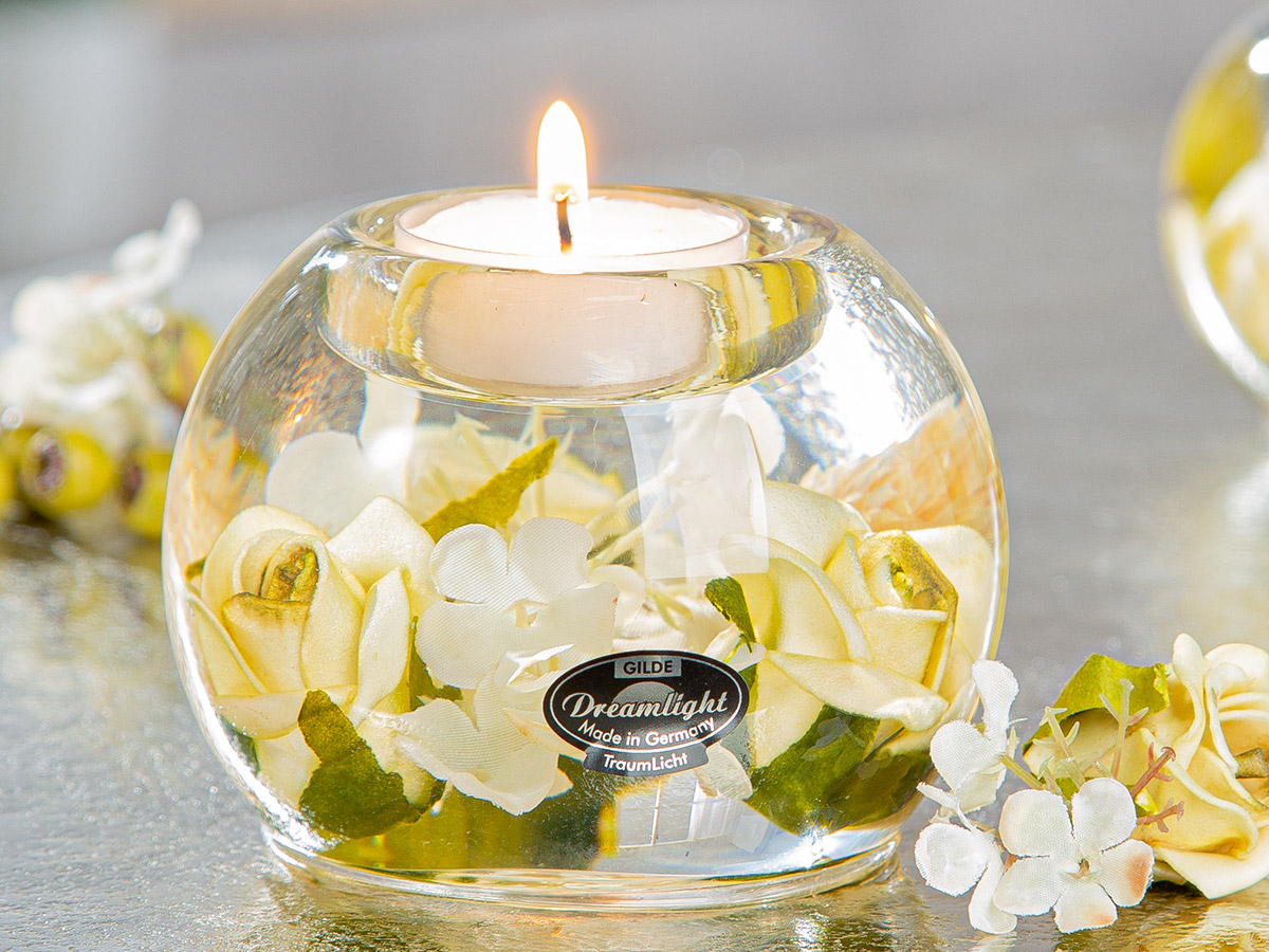 GILDE Dreamlight, Suport lumanare, Mercur, Green Valley, Sticla, ecru, PU 6, H. 7 cm, D. 9 cm