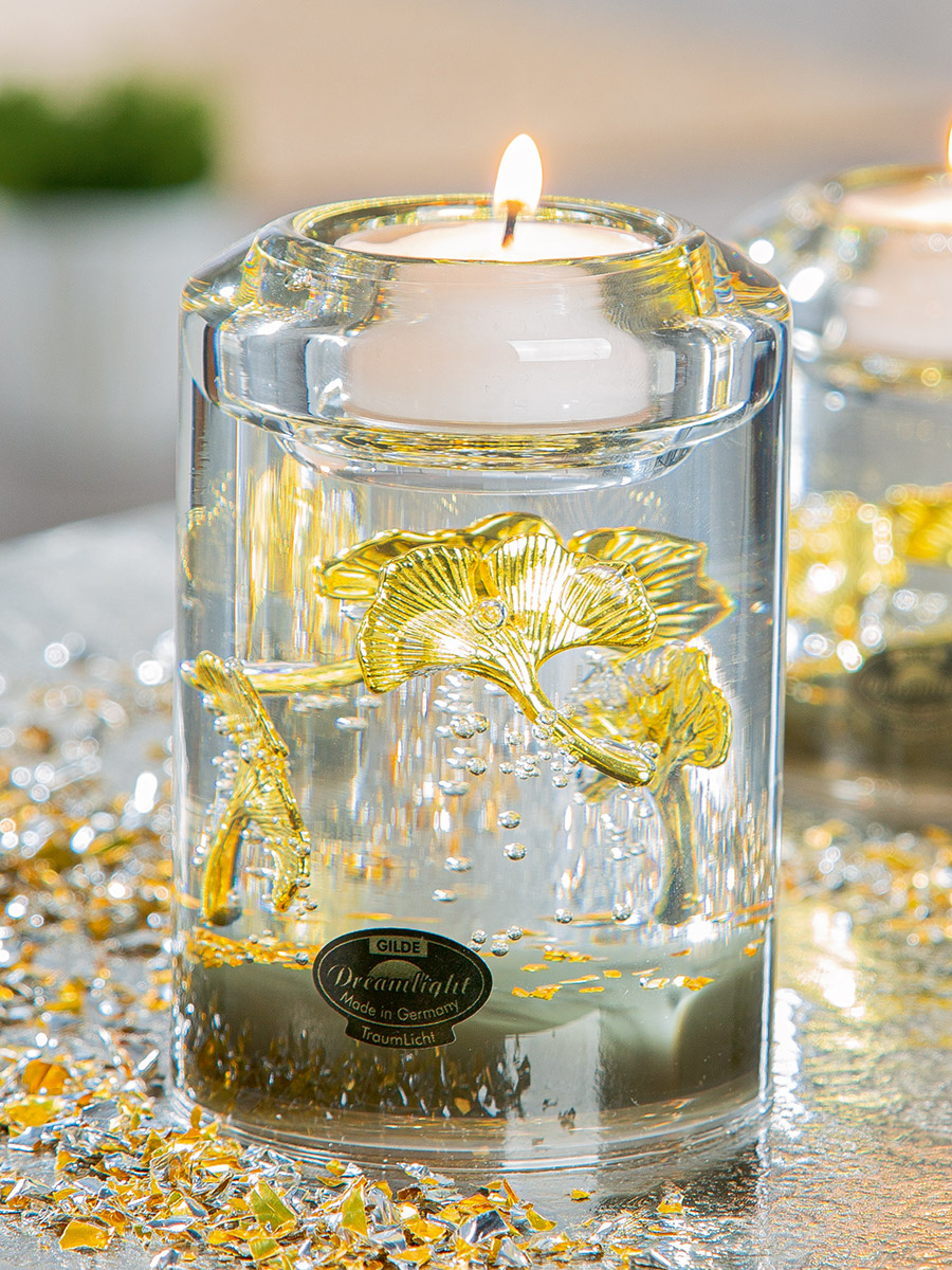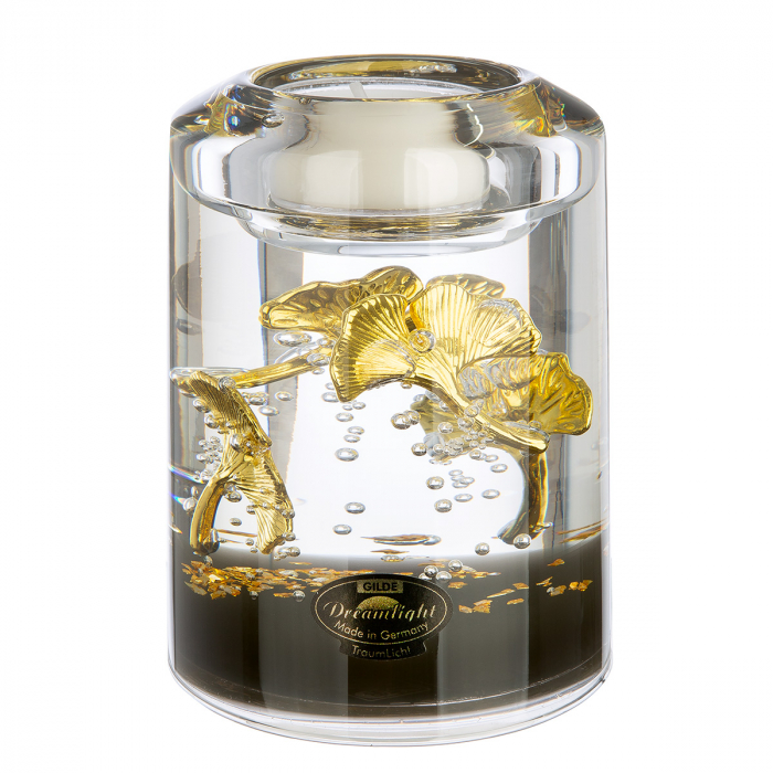 Dreamlight, Suport ceainic, Candela Classic, Ginkgo Royal, motiv Ginkgo, Sticla, auriu, PU 4, L. 7 cm, L. 7 cm, H. 10,5 cm