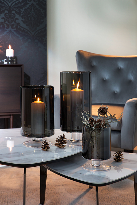 FINK Vaza / Suport lumanare Viana, Sticla, Transparent/Gri, 23x15.30 cm