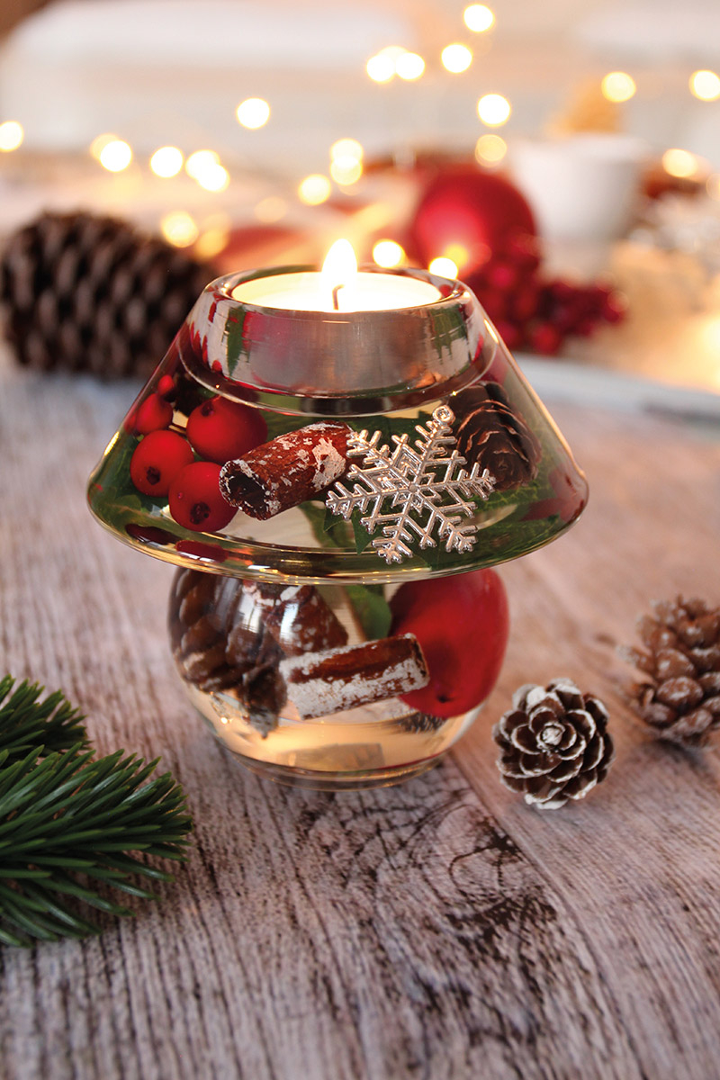 Suport lumanare Dreamlight, model tealight, Noblesse Mini, „Noel”, motiv fulg de zapada, sticla, maro, rosu, PU 6, L. 9,5 cm, l. 10 cm, H 9,5 cm