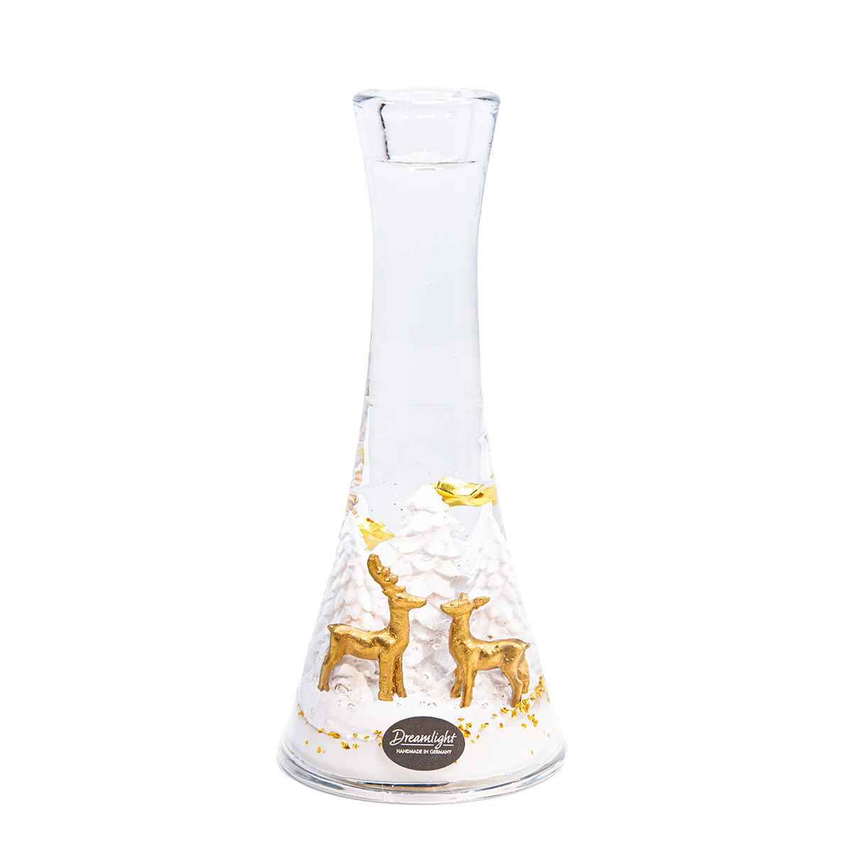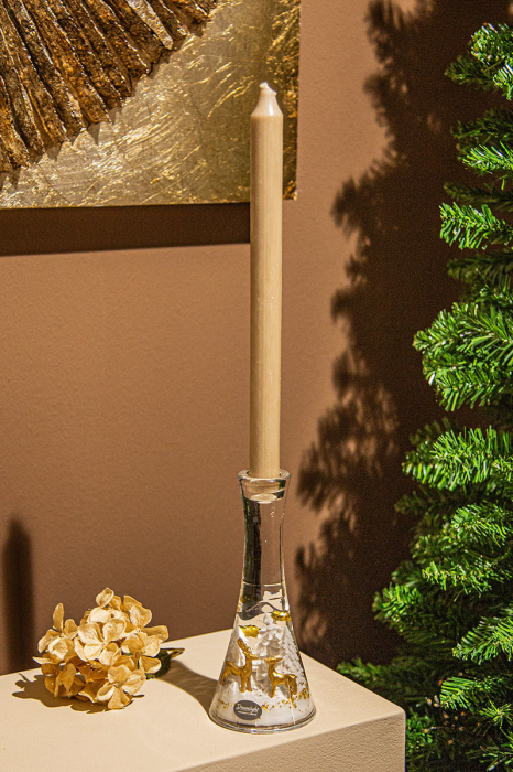 Suport lumanare tip tealight, Merlin Medium, „Wonderland Reindeer”, Motiv ren, Sticla, alb, auriu, PU 4, L. 8 cm, L. 8 cm, H 18,5 cm