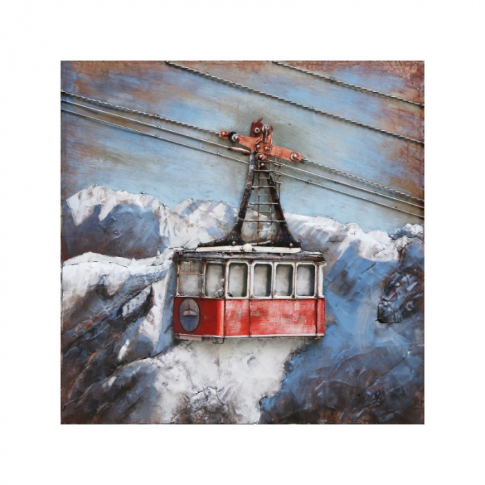 Funicular este un tablou metalic 3D, o imagine in relief ilustrand o telecabina.